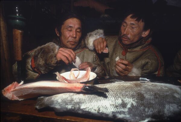 Stroganjina je još jedno tradicionalno jelo severnih naroda — veoma jednostavno za pripremu. Služi se u sirovom, zamrznutom stanju. Reč je zapravo o rendanoj, sveže zamrznutoj ribi ili mesu. Uglavnom se služe manje porcije, kako ne bi došlo do prevremenog odmrzavanja. Ali, ne može se od svake ribe praviti stroganjina. Najbolje je od jestre ili od neke ribe iz grupe zrakoperki. Radi boljeg ukusa stroganjinu umaču u „makanin“ — mešavinu soli i crnog mlevenog bibera.