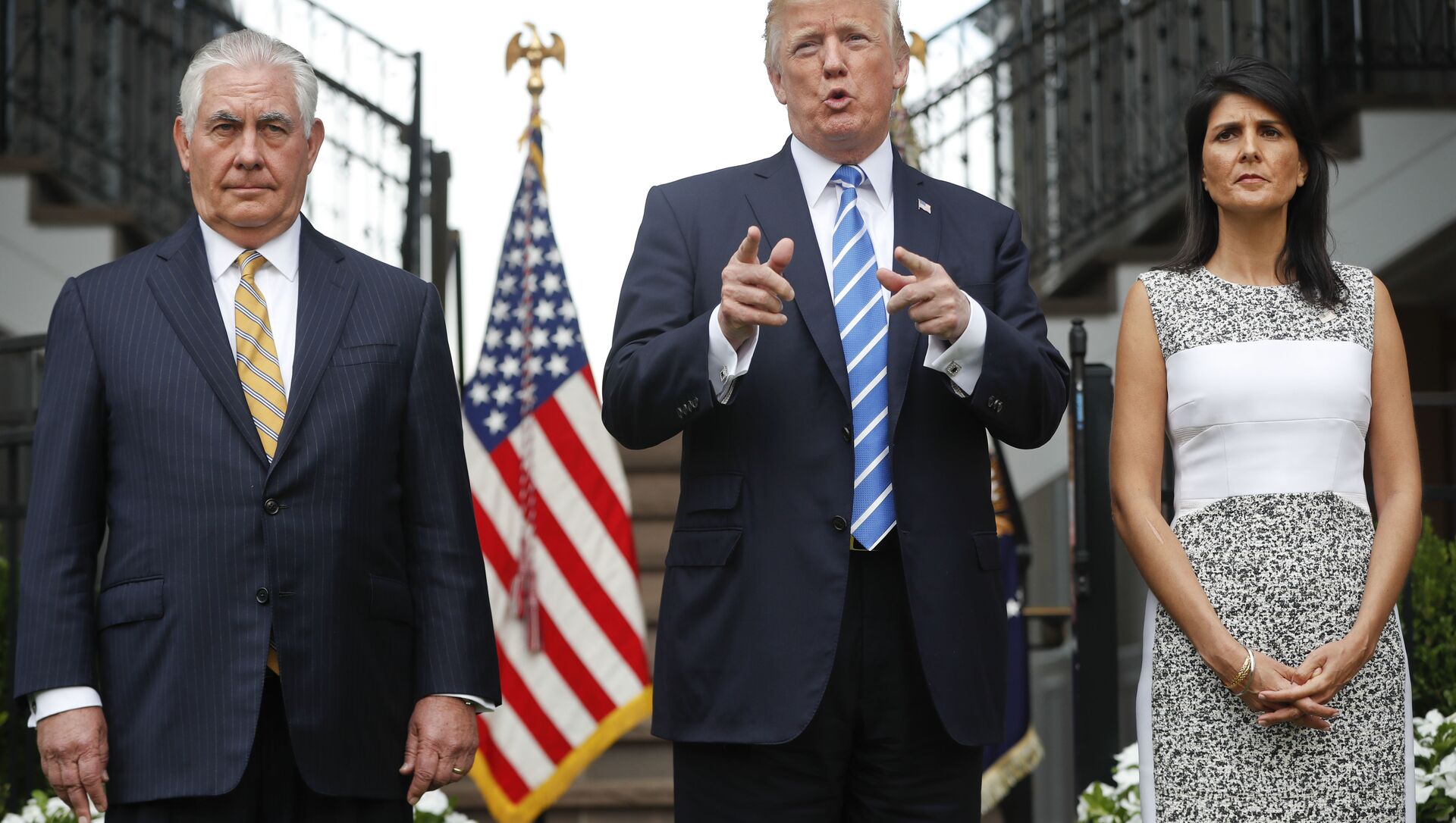 © AP Photo / Pablo Martinez MonsivaisDonald Tramp, Reks Tilerson i Niki Hejli