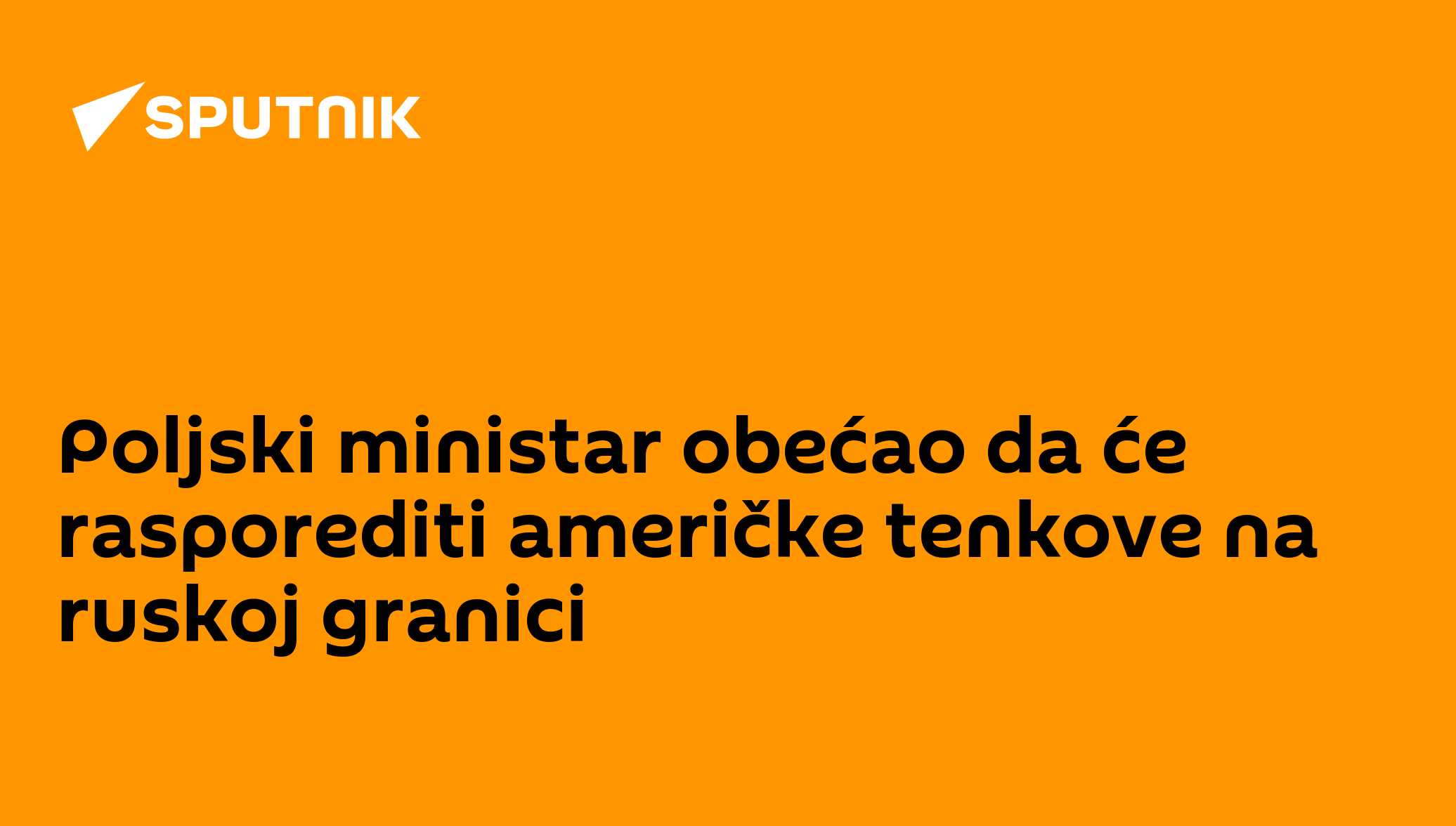 16:35 23.07.2021 (Osveženo: 01:16 26.08.2021) Ministar odbrane Poljske Mariuš Blaščak je u intervjuu za poljsku televiziju „vPoljsce“ obećao da će rasporediti američke tenkove „Abrams“ na ruskoj granici.