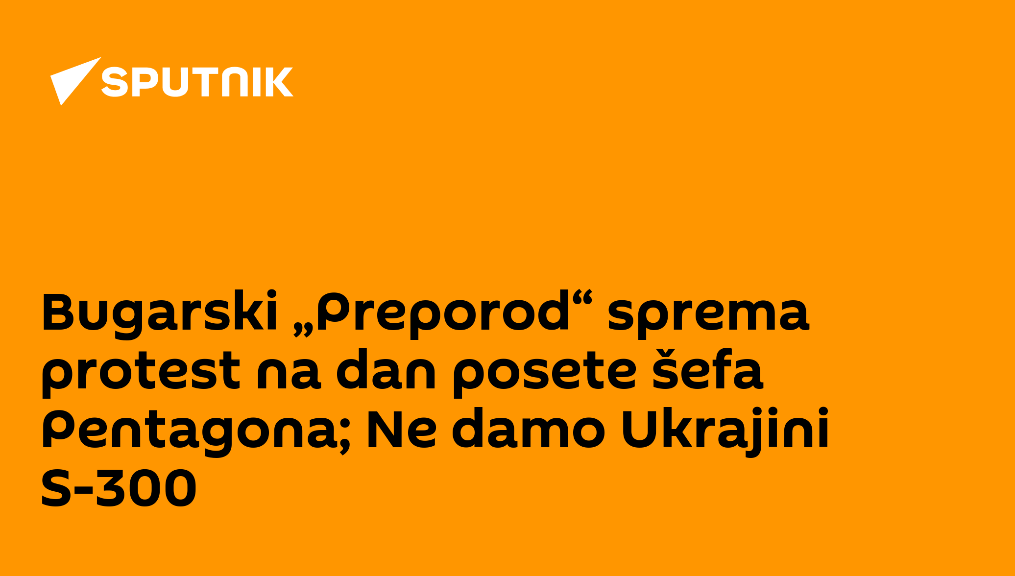 Bugarska parlamentarna stranka „Preporod“ kritikovala je pokušaje SAD da ubede zvaničnu Sofiju da isporuče Ukrajini svoje S-300. Zbog toga će stranka sutra organizovati protest kod zgrade Ministarstva odbrane, upravo u danu kada u Bugarsku dolazi američki ministar odbrane Lojd Ostin.