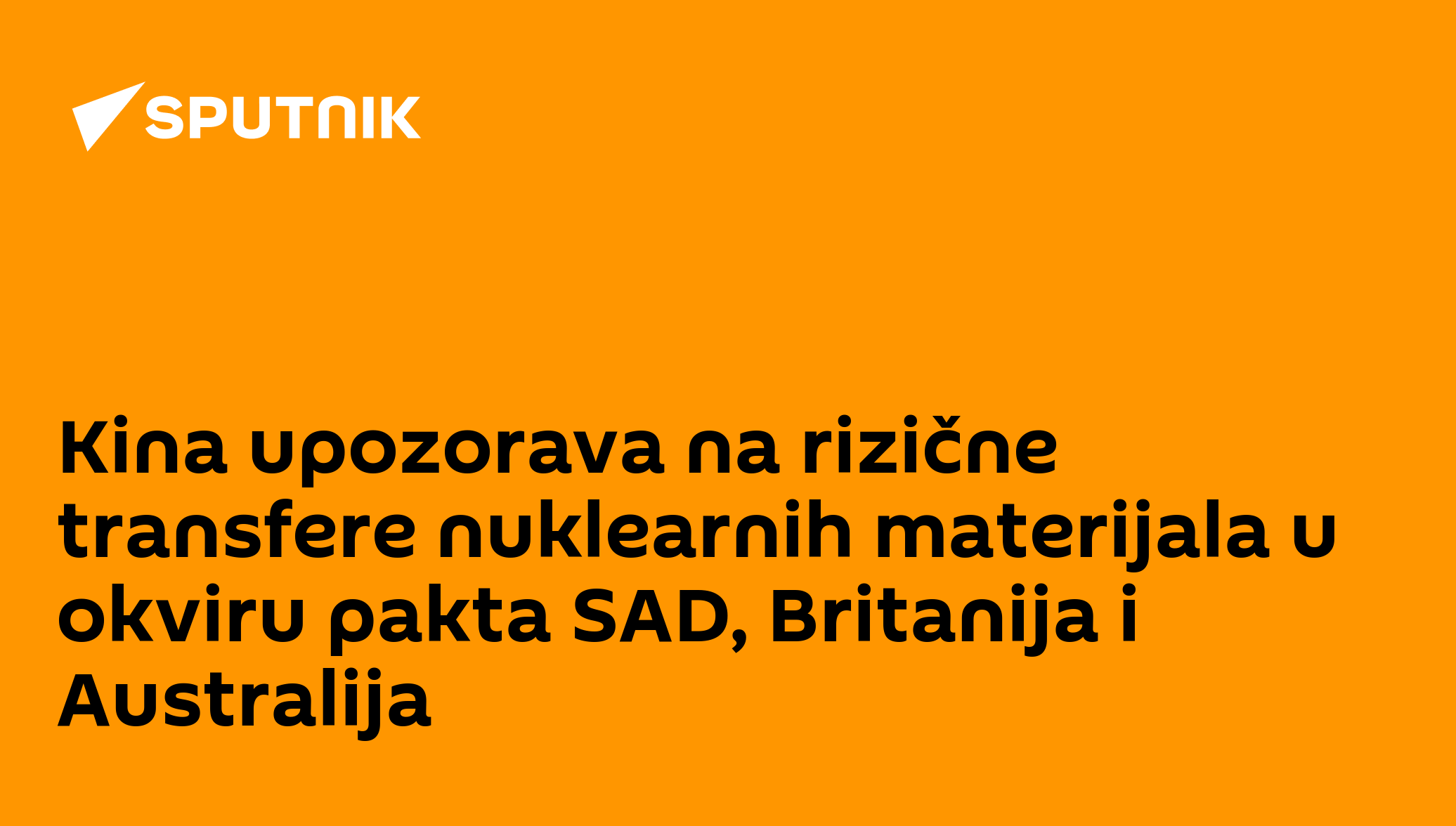 13:24 13.09.2022 (Osveženo: 13:32 13.09.2022) Peking je optužio SAD, Veliku Britaniju i Australiju za rizične transfere nuklearnih materijala u skladu sa paktom AUKUS, a kineski izaslanik pri UN pozvao je IAEA da ugovor podvrgne strožoj kontroli.