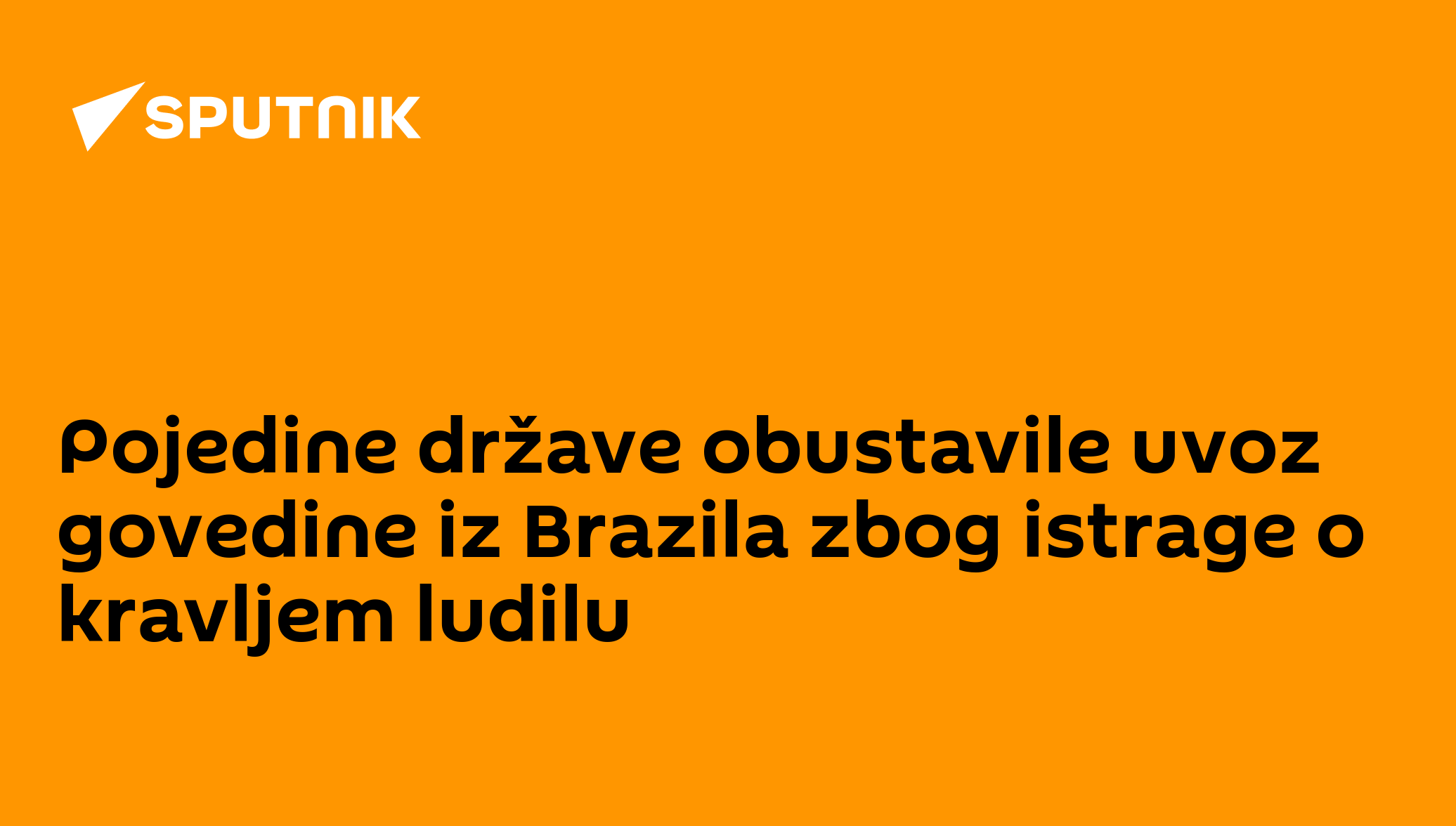 Brazil istražuje slučaj goveđe spongiformne encefalopatije (BSE) na devetogodišnjem mužjaku. Otkriće slučaja, saopšteno 20. februara, pokrenulo je samonametnutu zabranu prodaje brazilske govedine Kini, preneo je „Jutarnji list“.