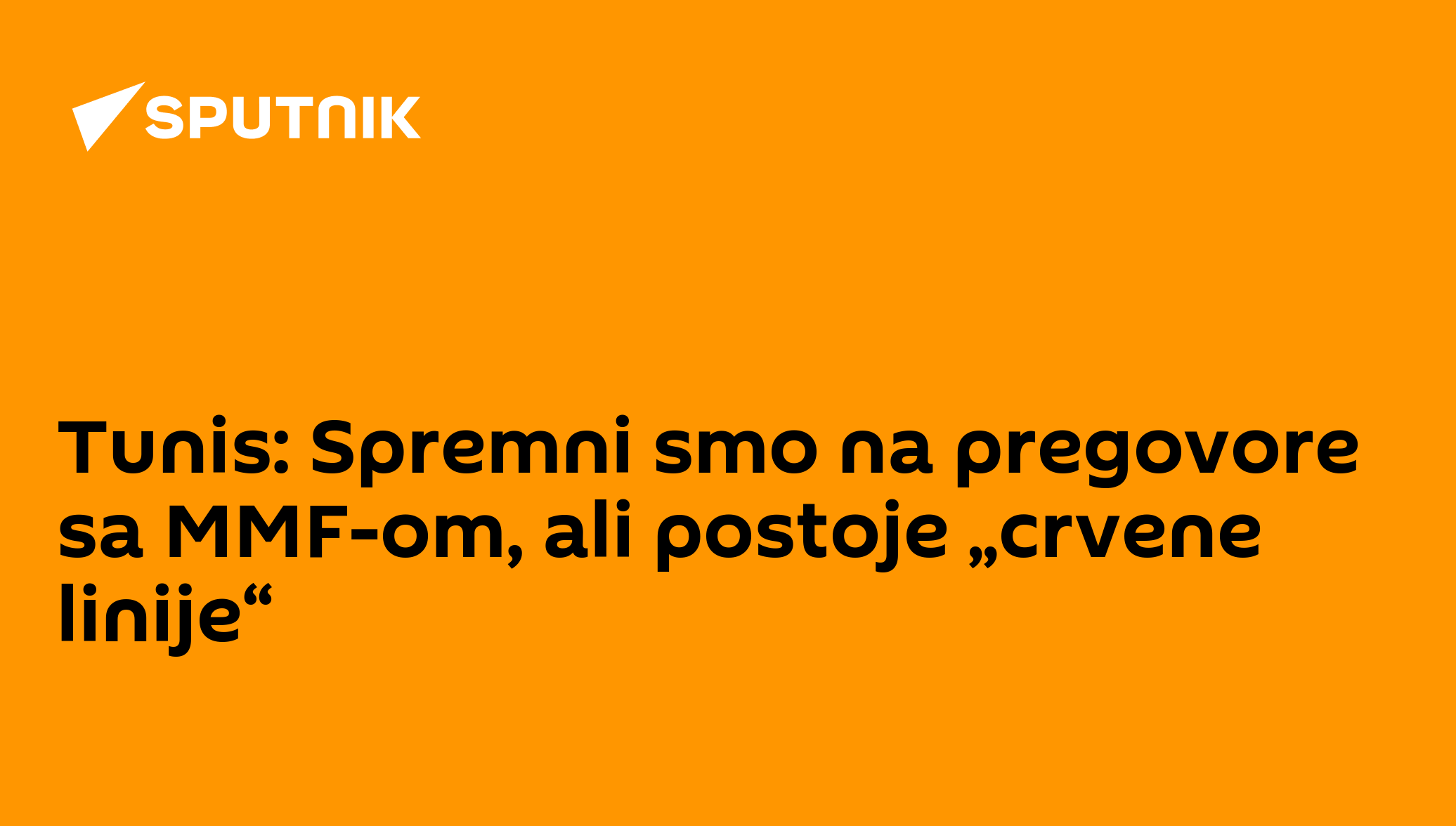Tunis nikada nije prekidao kontakte sa Međunarodnim monetarnim fondom i spreman je da pregovara sa njim, ali u pitanjima saradnje zemlja ima svoje „crvene linije“, rekao je za Sputnjik ministar spoljnih poslova Tunisa Nabil Amar koji boravi u zvaničnoj poseti Moskvi.