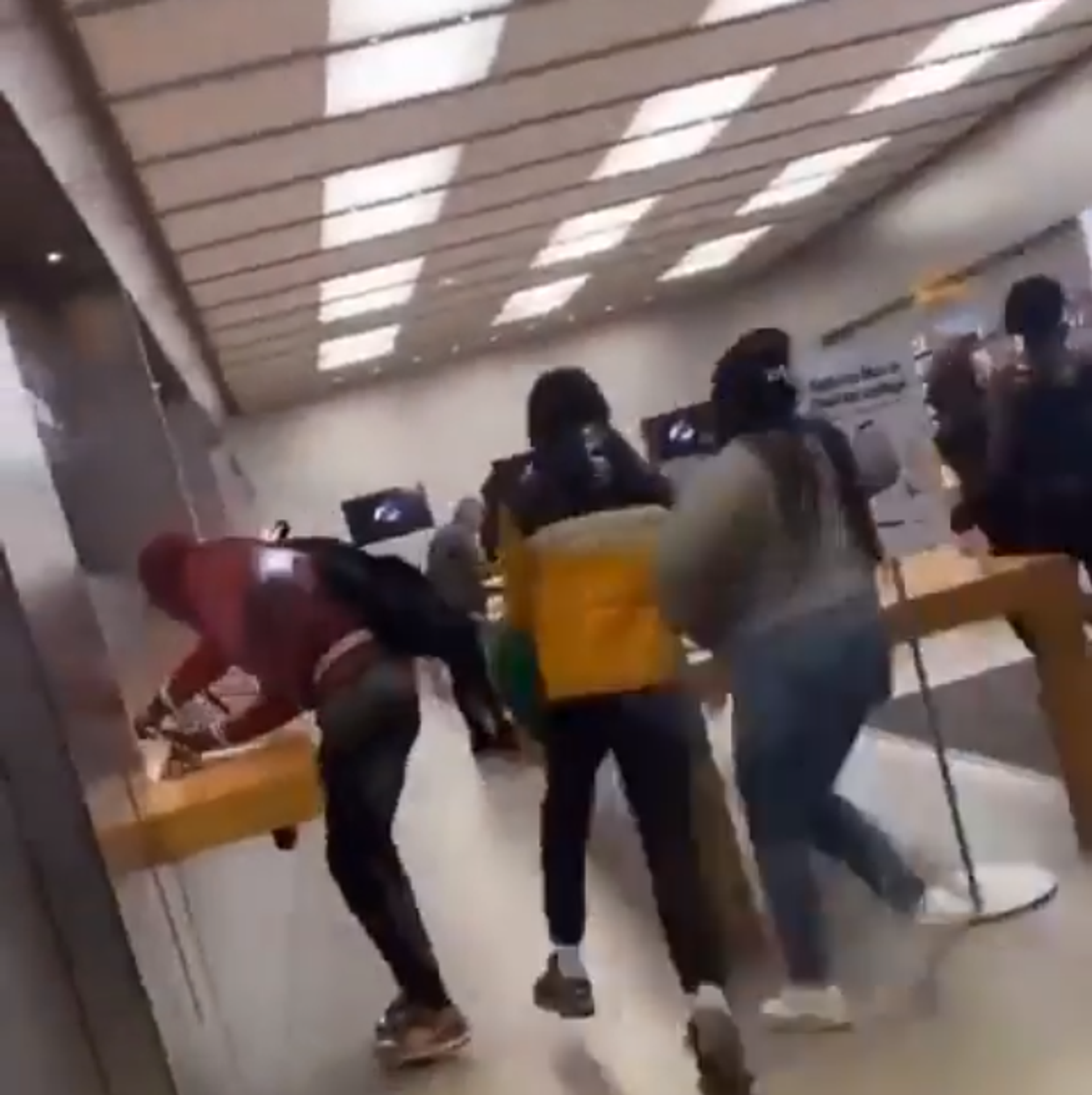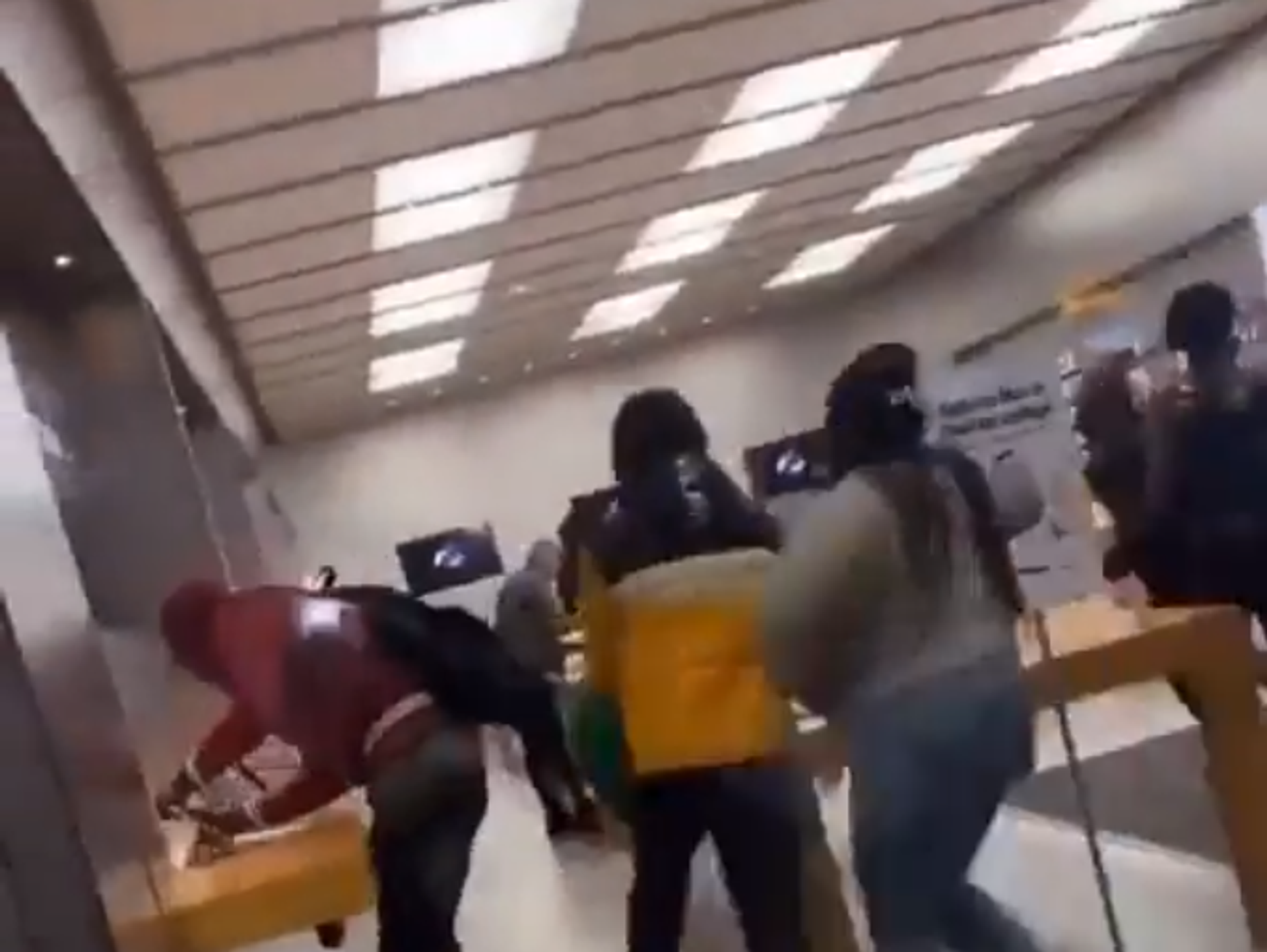 U video koji je snimljen na mestu događaja vide se ljudi u duksevima sa kapuljačama, od kojih neki imaju i maske na licu, kako upadaju u Epl prodavnicu, iznoseći iz nje robu. Opljačkana je i obližnja radnja Fut loker, koja prodaje sportsku odeću i obuću.