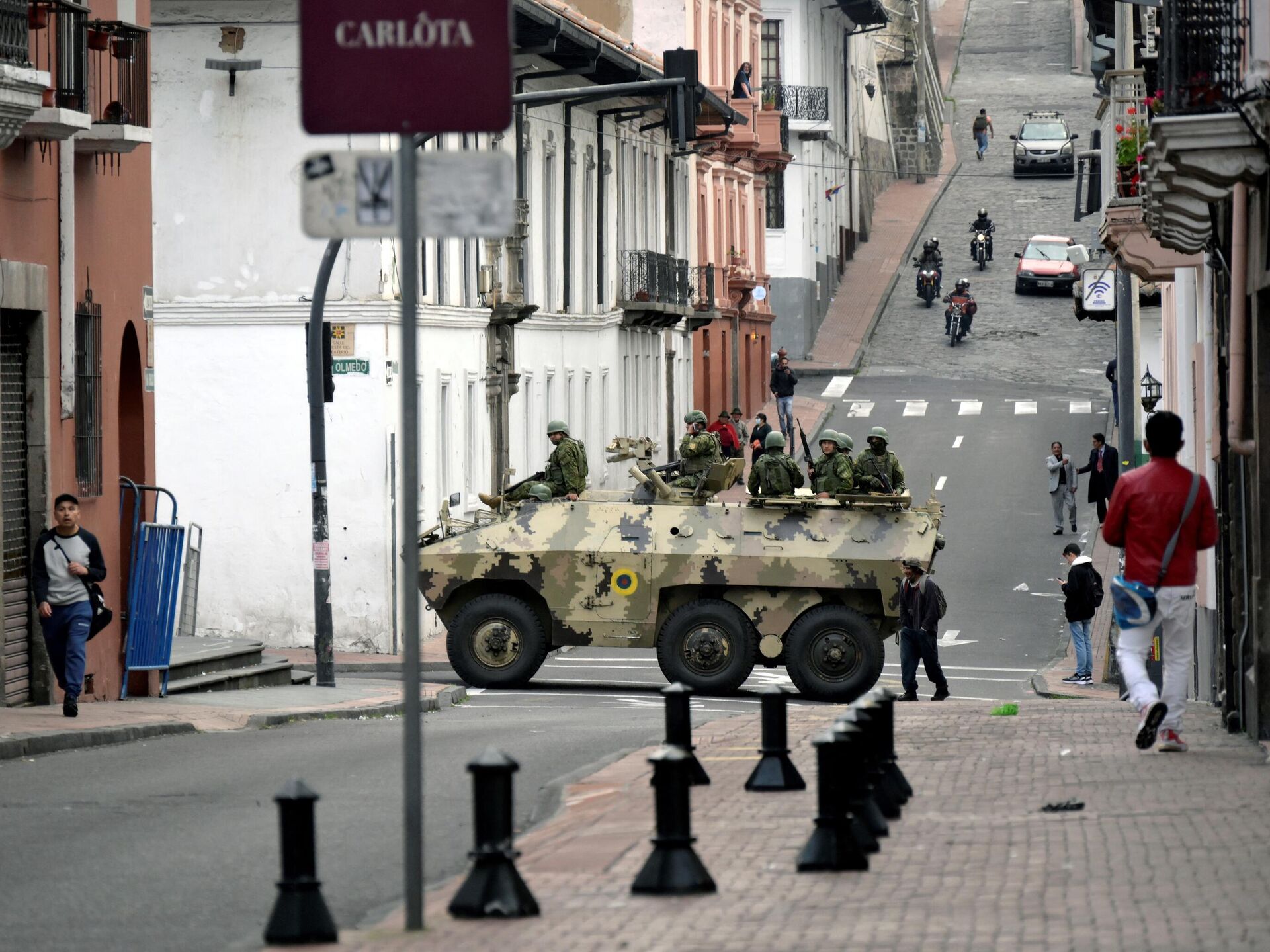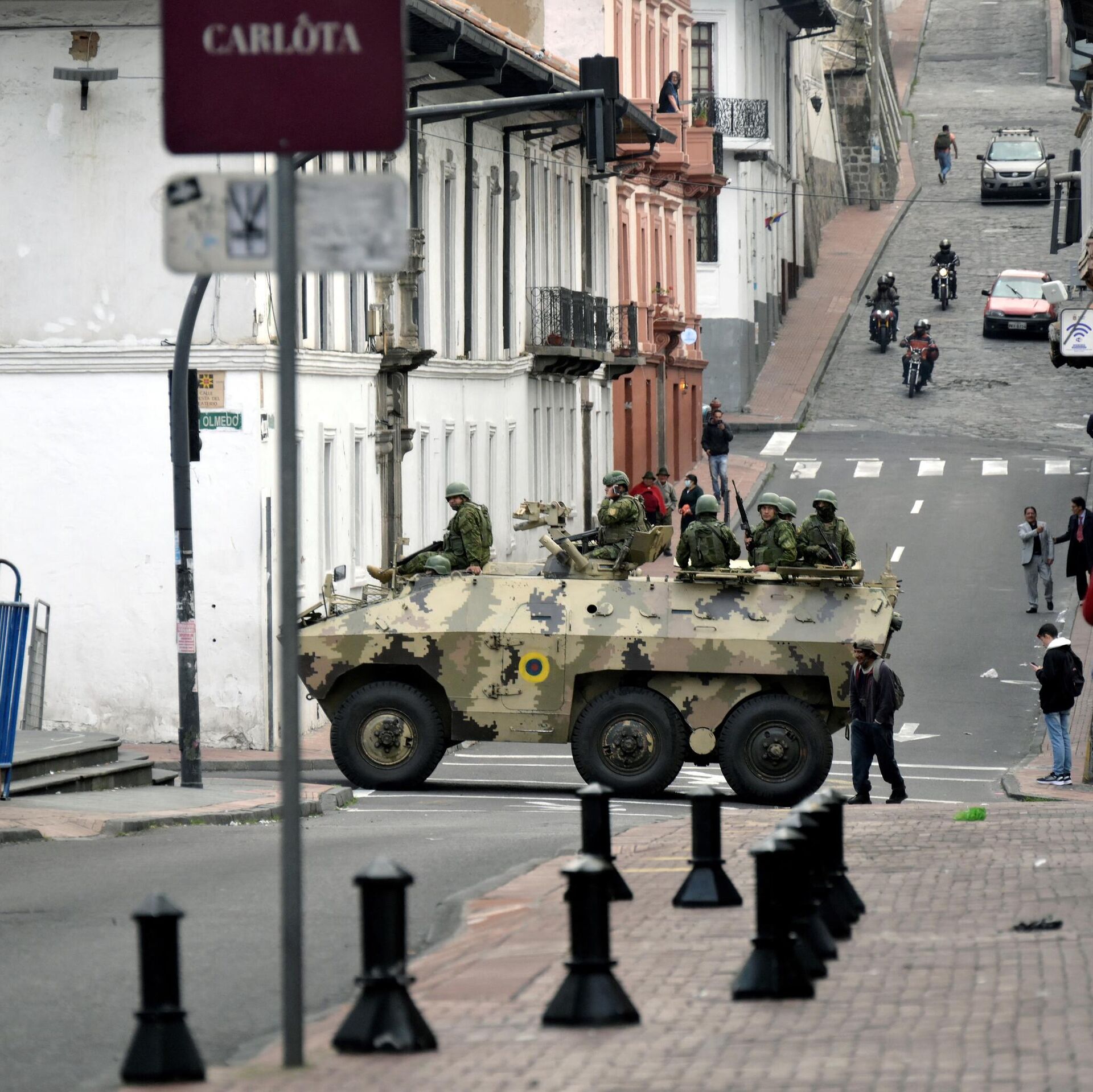 Vojna tehnika pojavila se u istorijskom centru grada nakon što je predsednik Ekvadora Danijel Noboa potpisao dekret kojim se uvodi režim "unutrašnjeg oružanog sukoba".