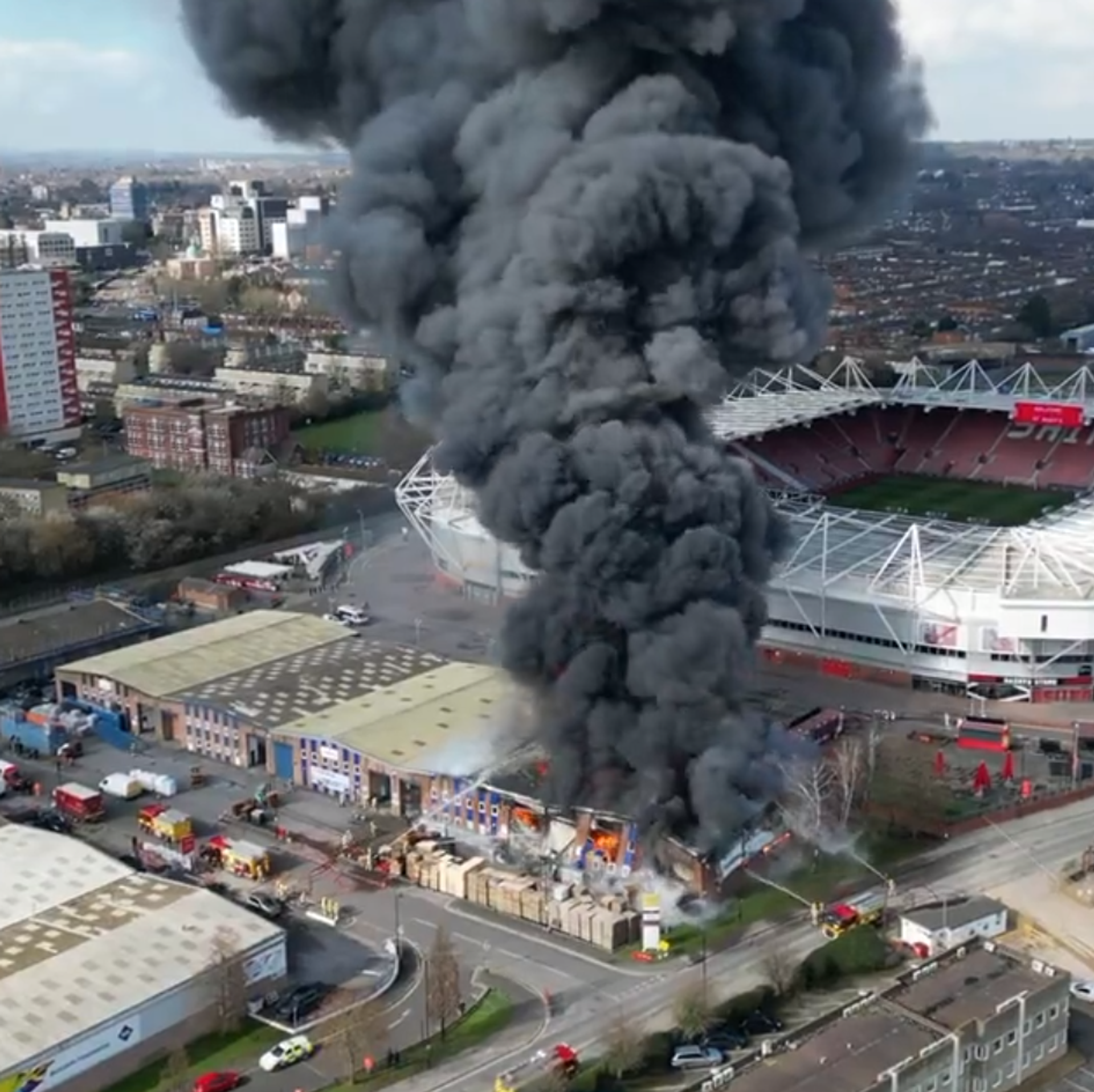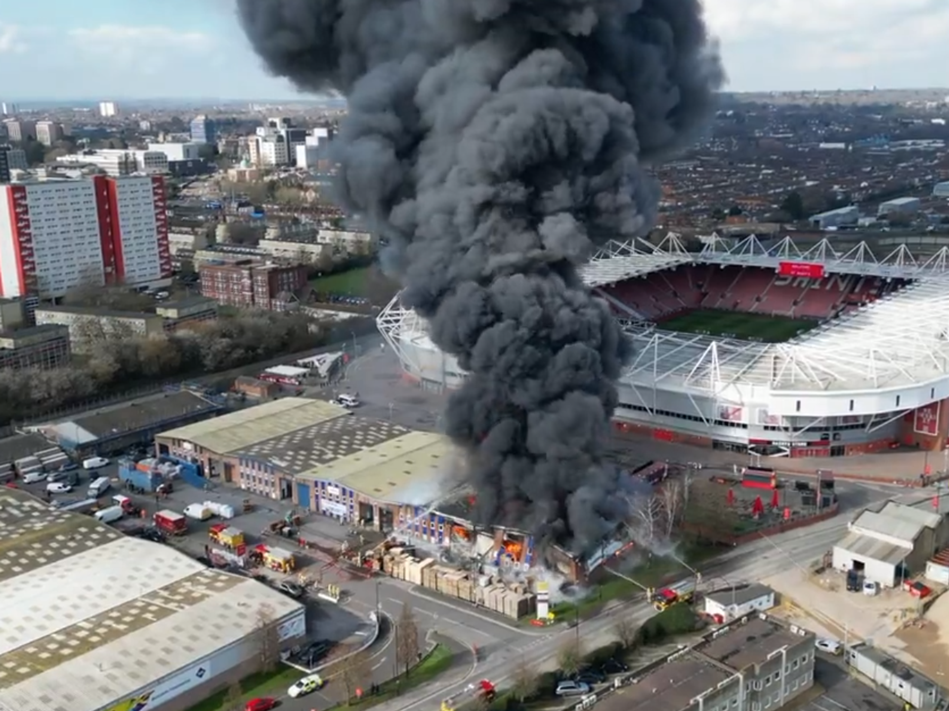 © Foto : Tviter/Second Tier podcastVeliki požar u Sautemptonu kod stadiona Sent Meris