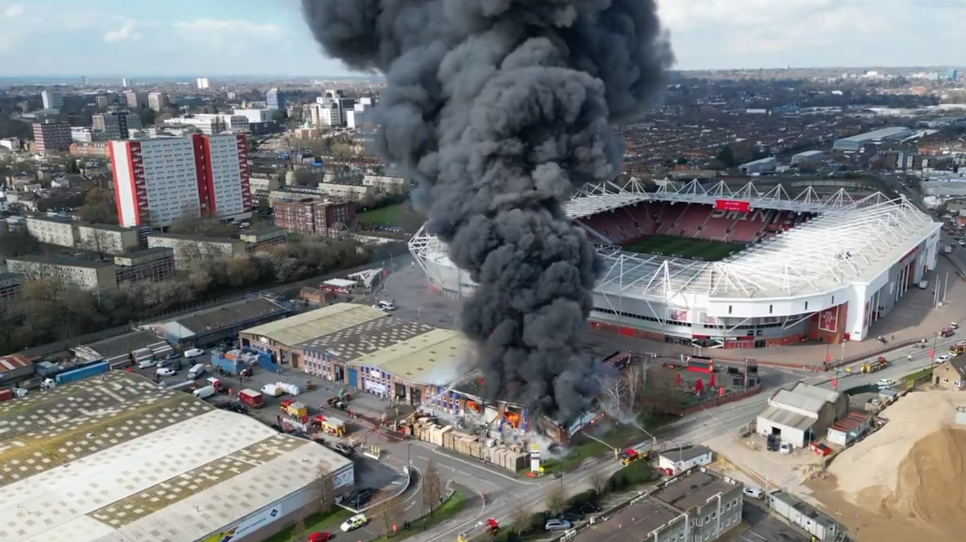 Veliki požar u Sauthemptonu kod stadiona Sent Meris /video/