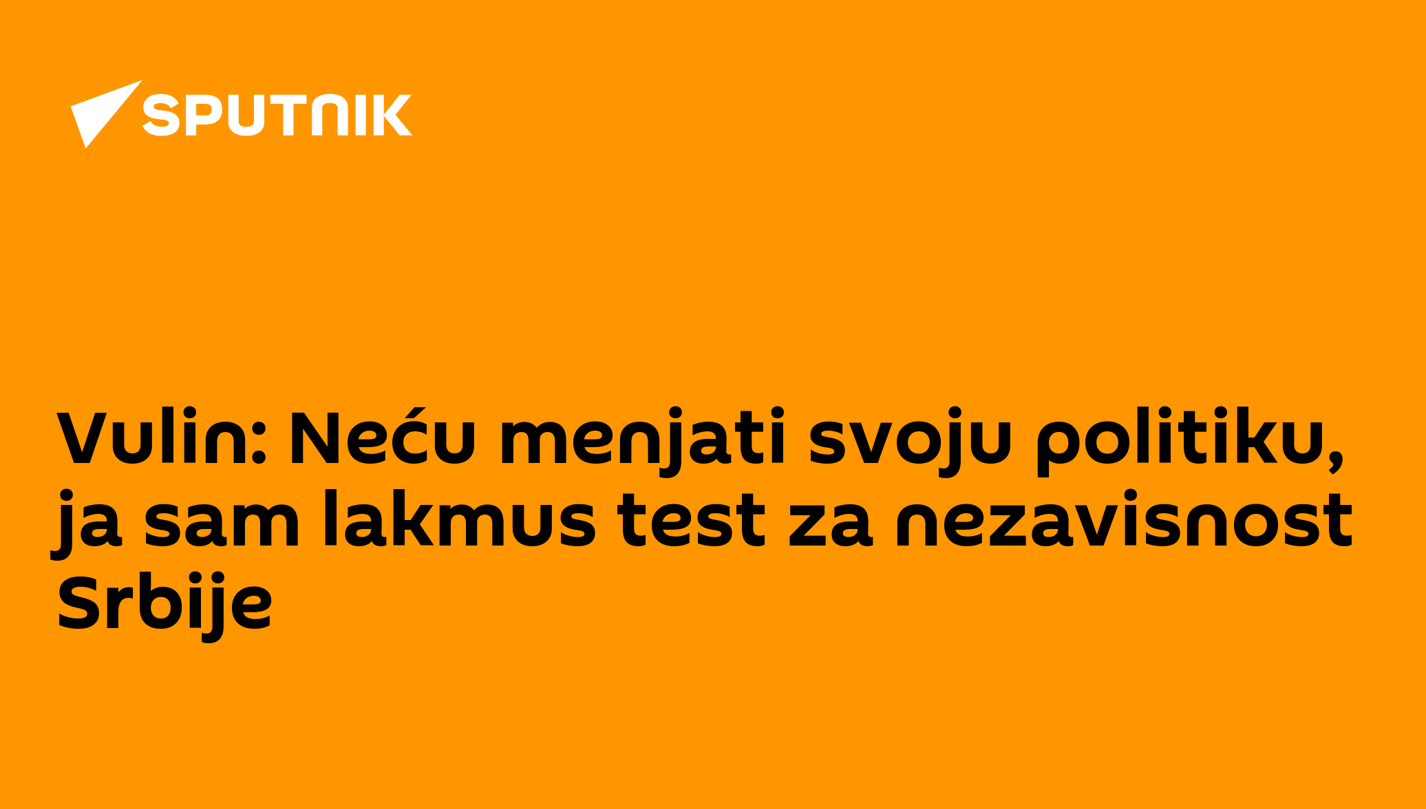 Neću menjati svoju politiku i neću prestati da se zalažem za ujedinjenje Srba, srpskog sveta, vojnu neutralnost i najtešnje odnose s Rusijom i Kinom. Dokle god je Srbija nezavisna, postojaće prostor za moje delovanje. Ja sam lakmus test za nezavisnost Srbije, poručio je potpredsednik Vlade Republike Srbije Aleksandar Vulin.