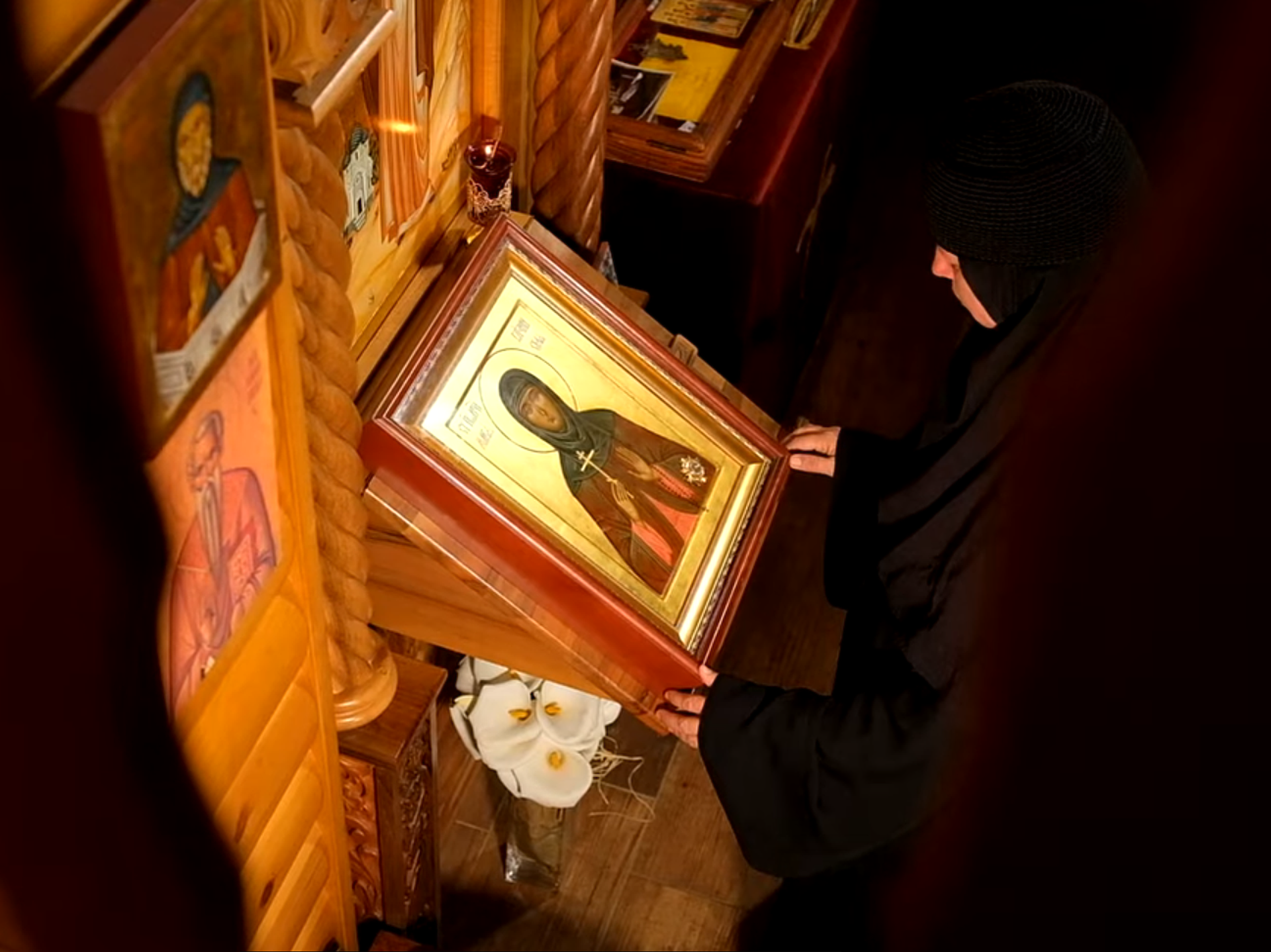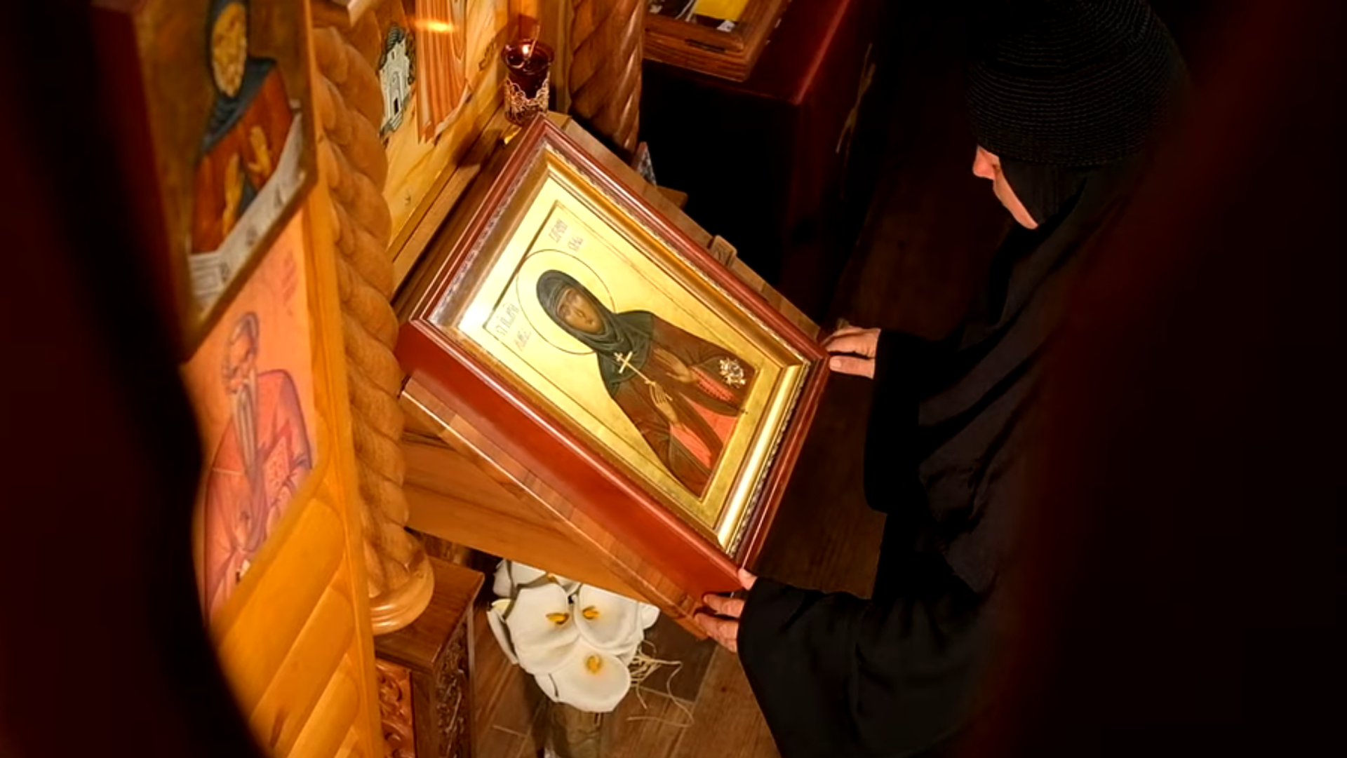 © Foto : Sputnjiku ustupila Jelena MićićMati Zlata pred ikonom Svete Marije Gatčinske