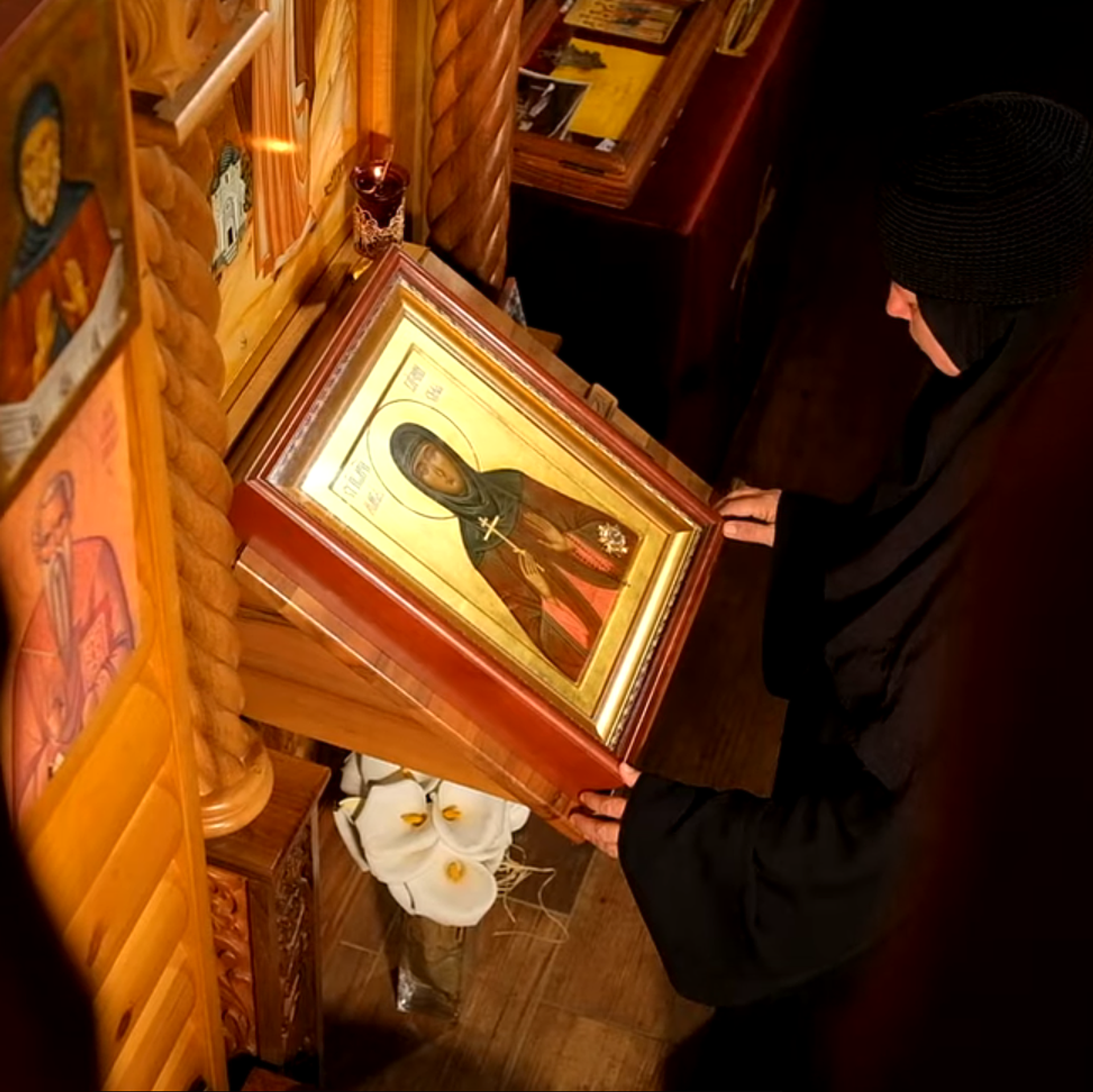 Ikonu sa česticom njenih moštiju ruski patrijarh Kiril poklonio je blaženopočivšem patrijarhu Irineju. Čuva je manastir Presvete Bogorodice Trojeručice na Avali.