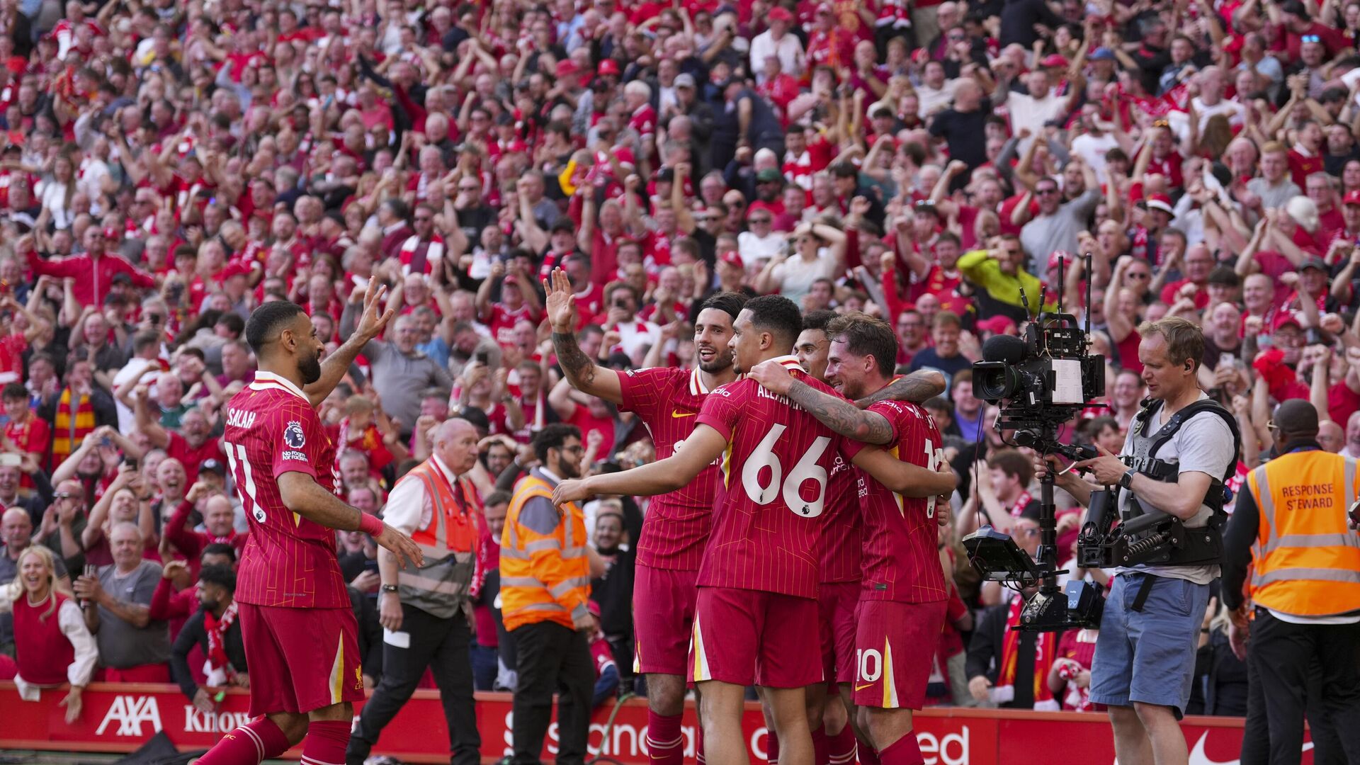 „Crveni đavoli“ su poslednji put pokorili Ostrvo pod komandom legendarnog ser Aleksa Fergusona davne 2013. godine i praktično se ne nazire kraj njihovog „posta“.S druge strane, Liverpul je drugi put za pet godina završio kao prvi na tabeli.Prethodni pod komandom Nemca Jirgena Klopa, sada pod trenerskom palicom Holanđanina Arnea Slota i to u njegovoj debitantskoj sezoni.Četiri kola pre kraja Liverpul ima nedostižnih 15 bodova prednosti u odnosu na prvog pratioca Arsenal.Iako nije dobro počelo na Enfildu jer je Dominik Solanke već u 15. minutu matirao Alisona, do kraja susreta mreža domaćina ostala je netaknuta, dok su Dijas, Mekalister, Gakpo i Salah pogađali.Konačnih 5:1 delo je Udogija, koji je postigao autogol u 69. minutu.Do kraja nije bilo promene rezultata, te je Liverpul ispisao istoriju engleskog fudbala, izjednačivši se po broju titula sa dosadašnjim rekorderom Mančester junajtedom, koji više nije nedodirljiv.