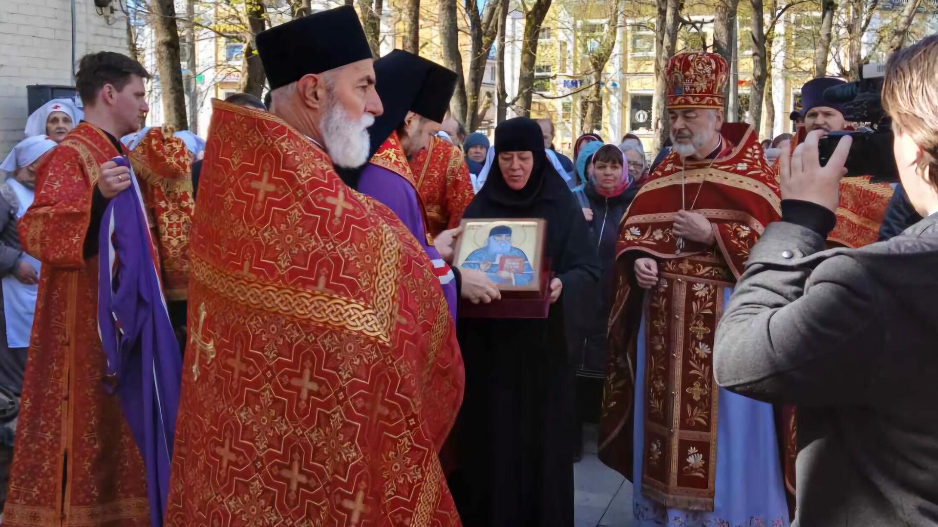 Predaja čestice moštiju i ikone Svetog Justina Popovića episkopu gatčinskom i luškom Mitrofanu - Sputnik Srbija, 1920, 28.04.2025
