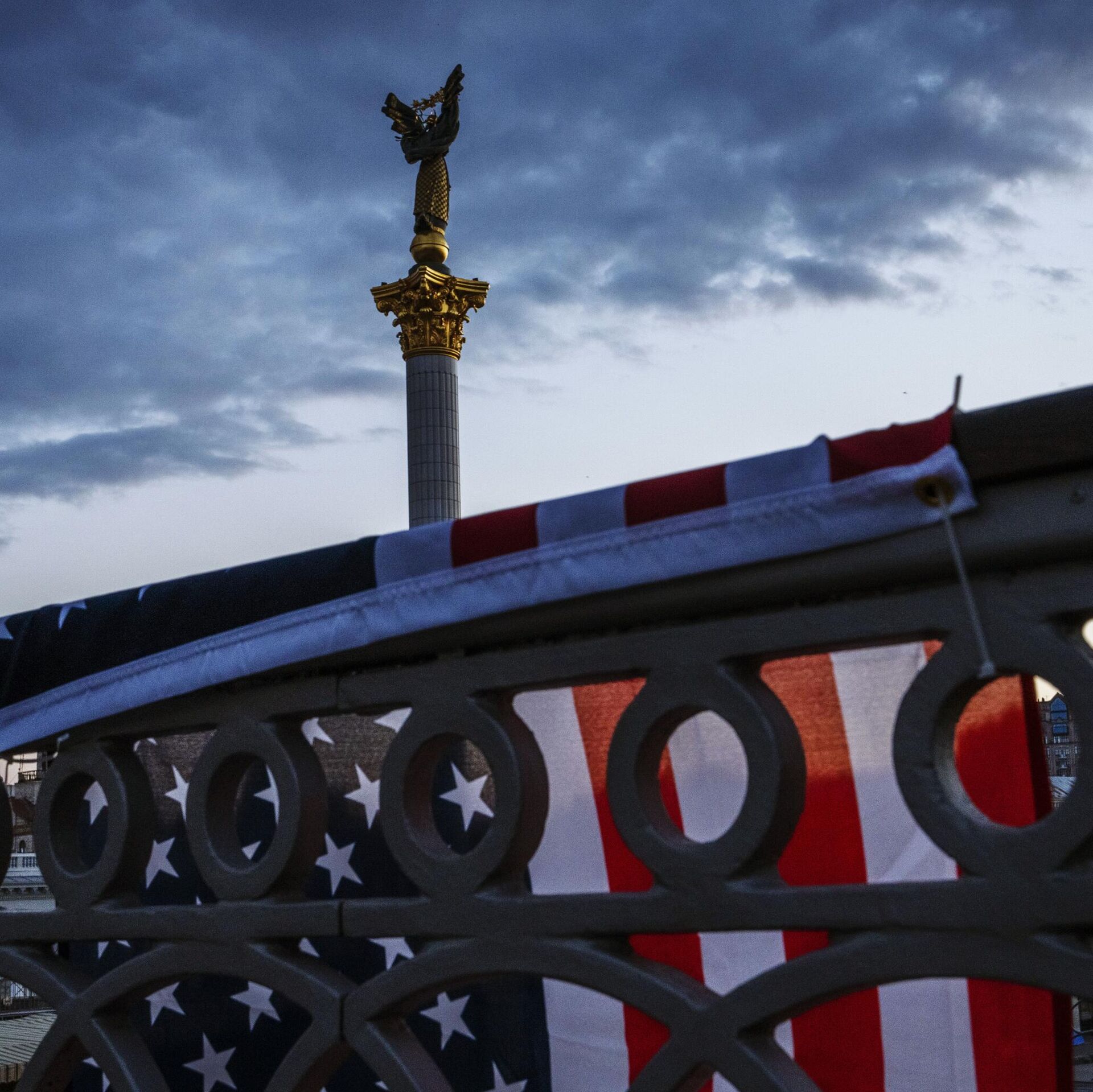 Američka zastava na ogradi mosta u Kijevu - Sputnik Srbija, 1920, 04.05.2025