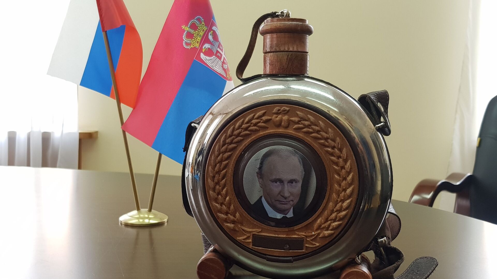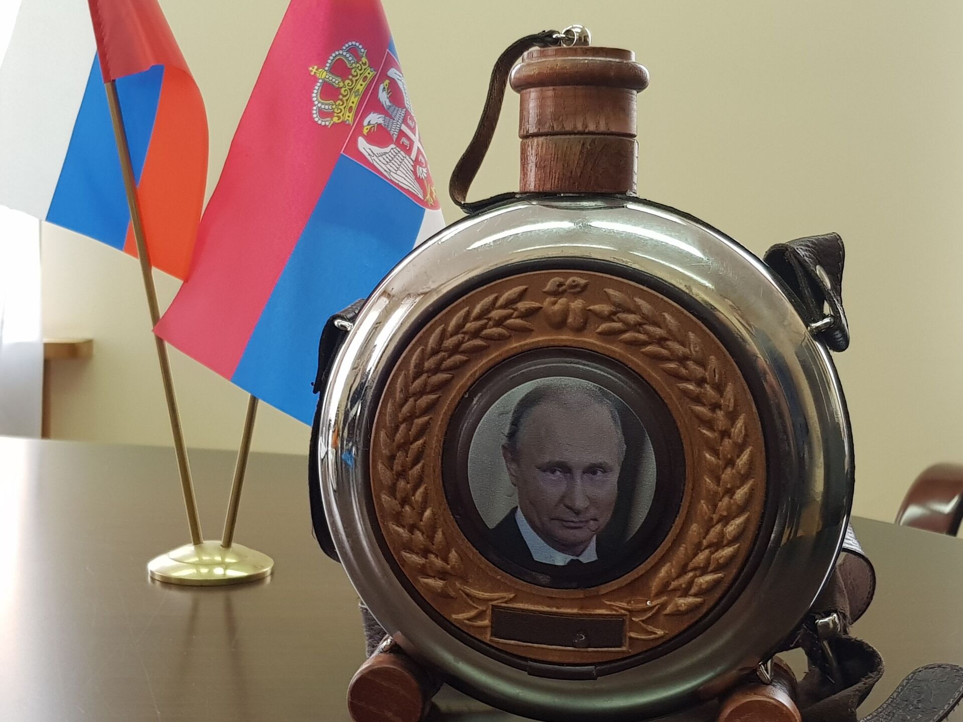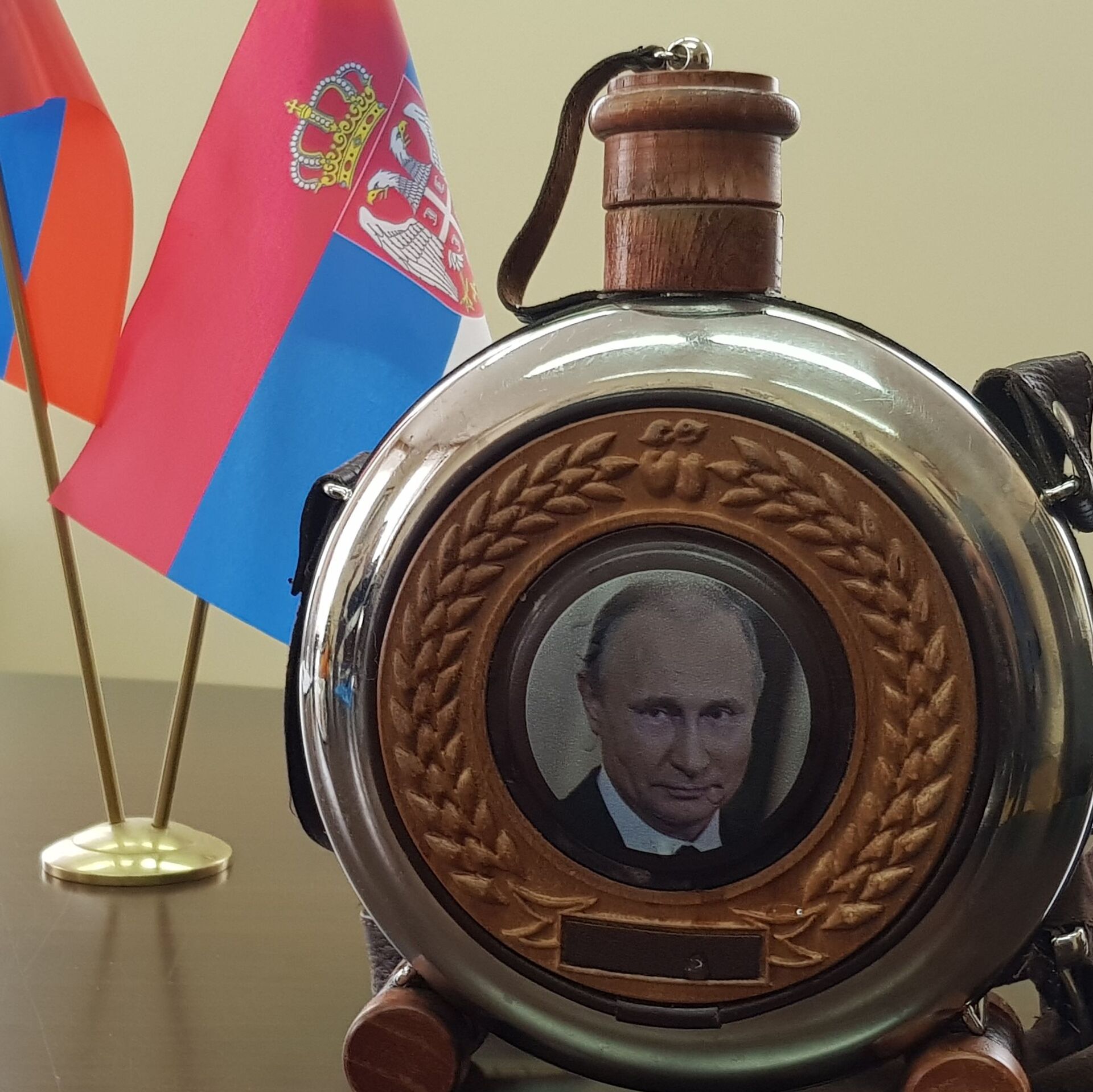 Čutura sa likom Vladimirom Putina koju je Milovan doneo na poklon predsedniku Rusije - Sputnik Srbija, 1920, 20.05.2025