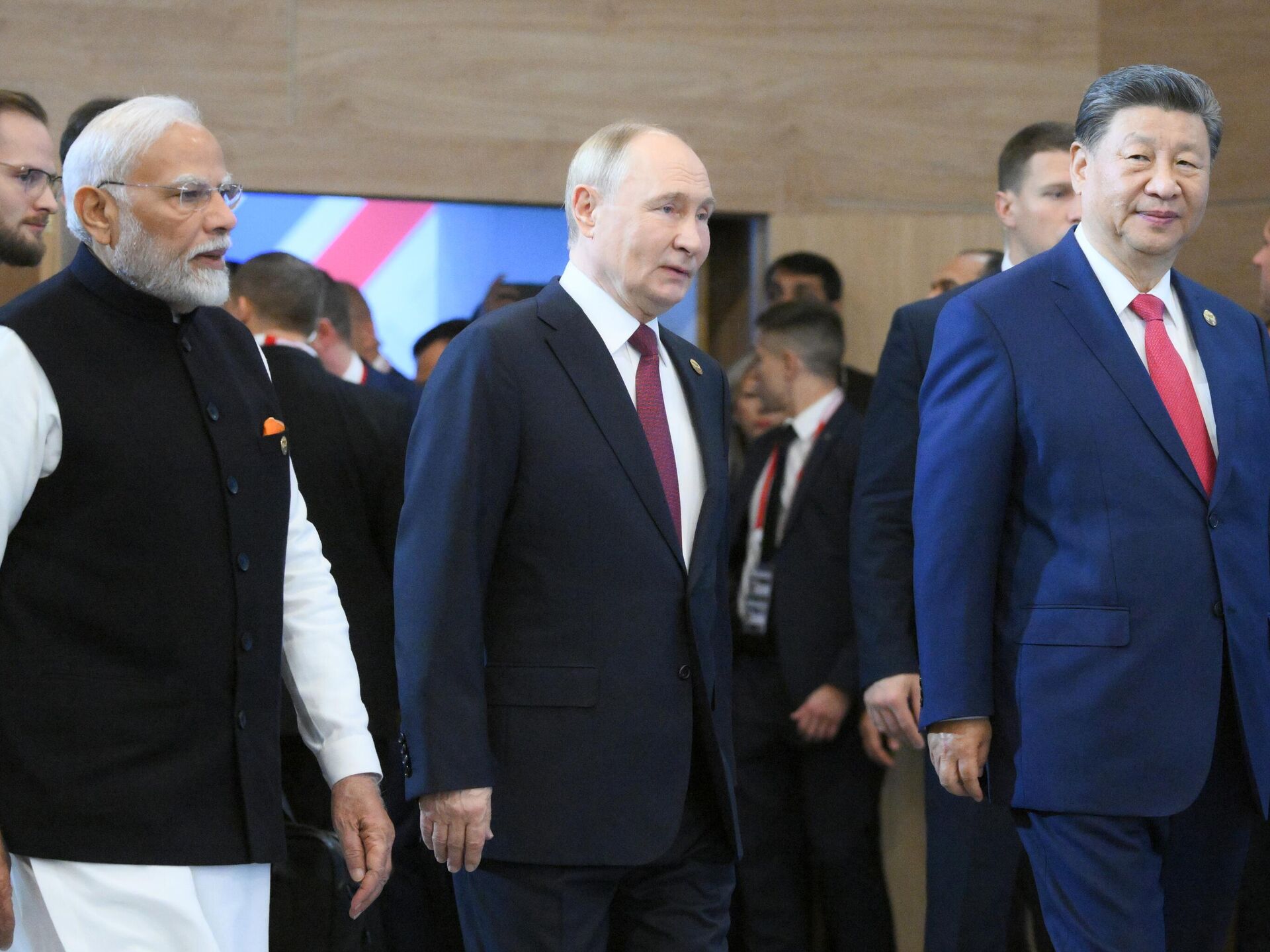 Komentarišući trostruko rukovanje lidera tri zemlje, Vladimira Putina, Narendre Modija i Si Đinpinga, Lavrov je rekao da ono predstavlja demonstraciju toga da tri velike sile, koje predstavljaju tri velike civilizacije, prepoznaju zajedničke interese u nizu oblasti.Lavrov je dodao da zajednički interesi zemalja leže u razvoju ekonomije, rešavanju socijalnih problema i poboljšanju blagostanja stanovništva.Pogledajte i:
