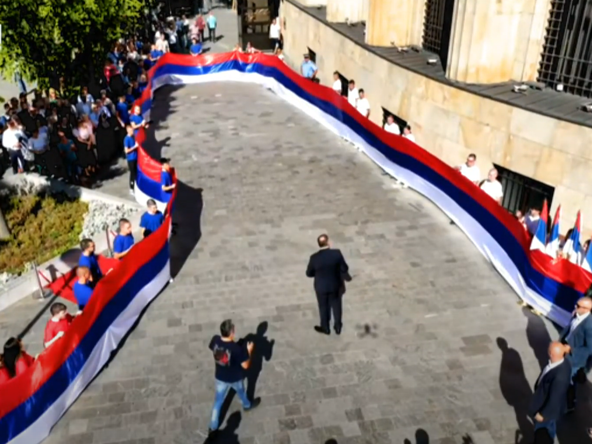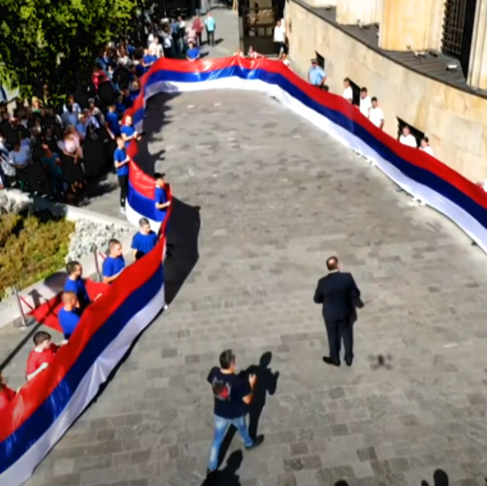 Razvijena srpska trobojka duga 120 metara u Banjaluci /video/