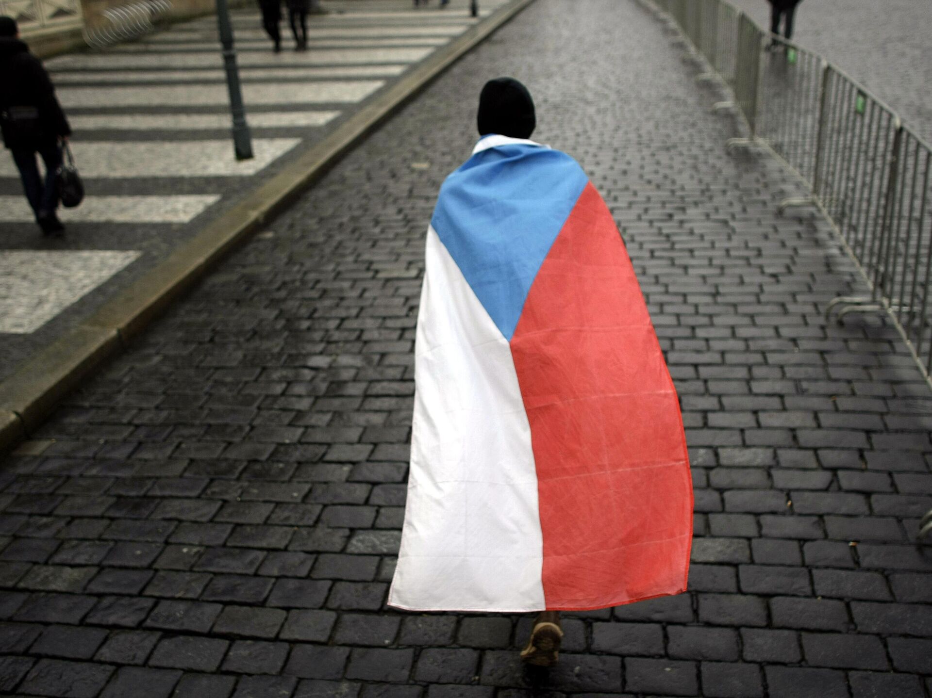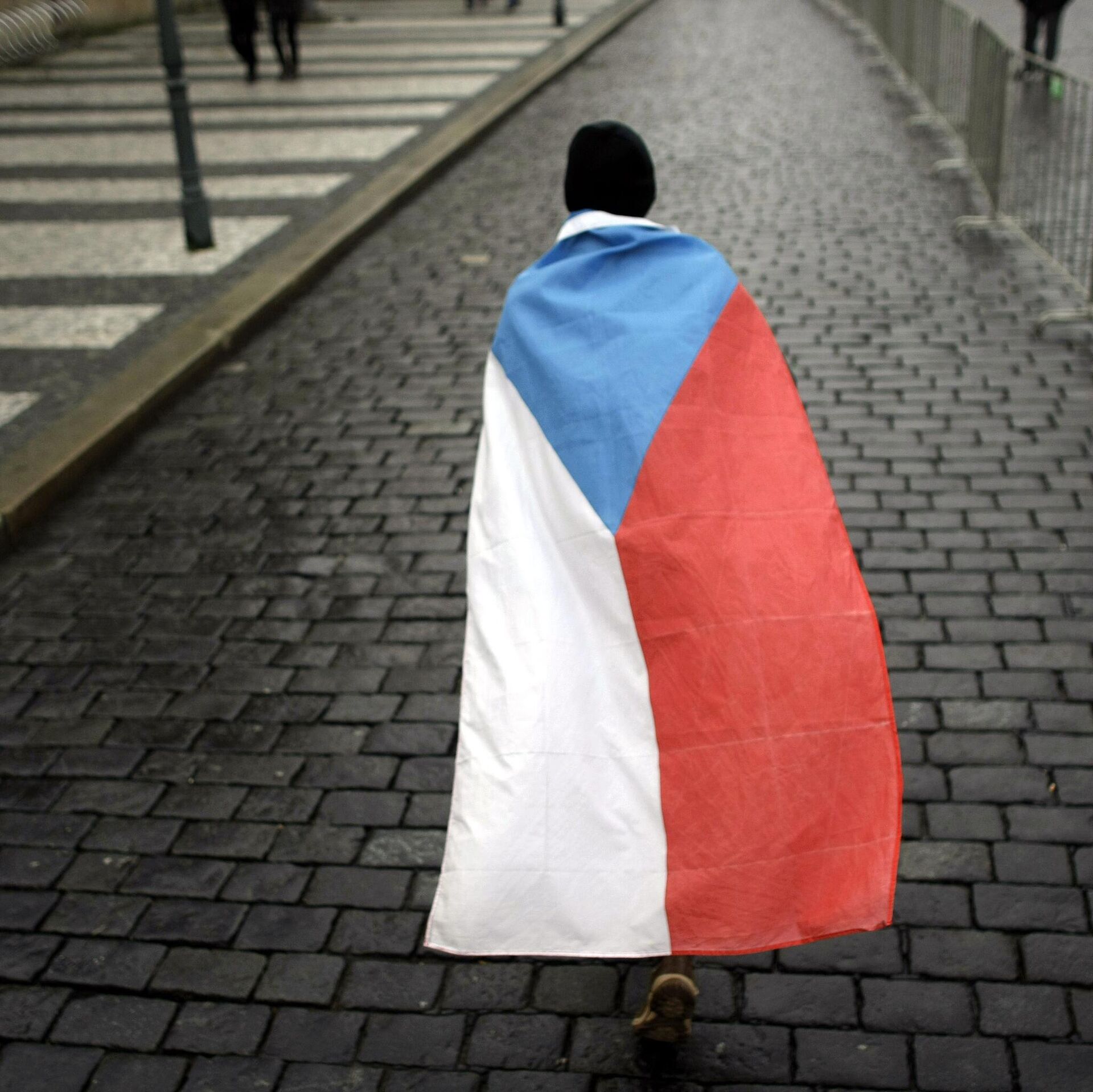 Čovek ogrnut češkom zastavom na ulicama Praga - Sputnik Srbija, 1920, 06.10.2025
