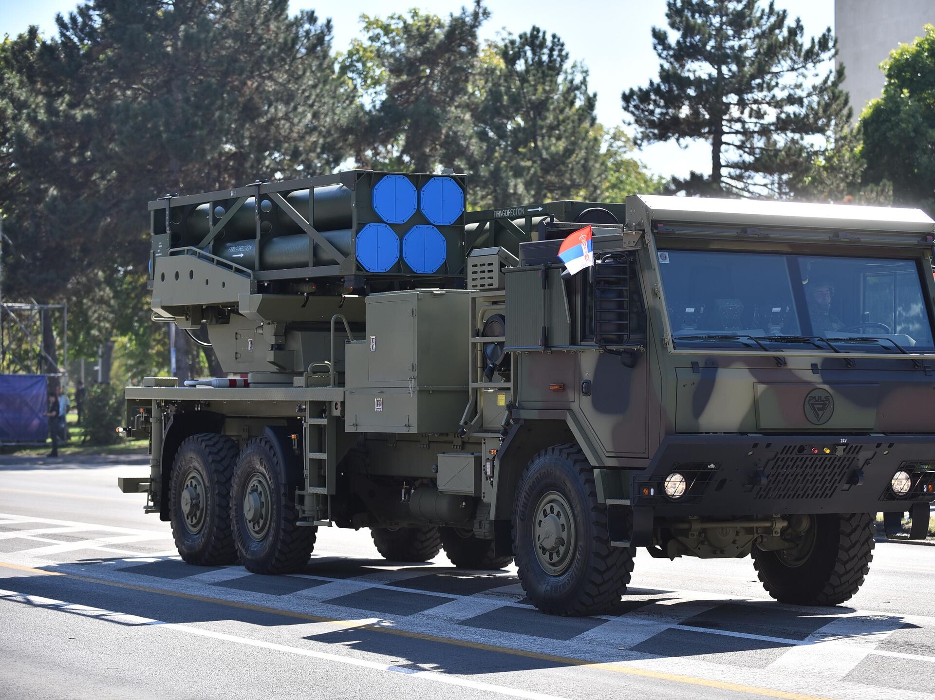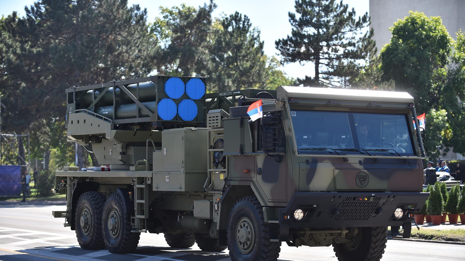 Prvi put je javnosti prikazan višecevni samohodni lanser raketa „puls“, koji je namenjen za gađanje važnih ciljeva na dometu i do 300 kilometara. Ovaj izraelski modularni raketni sistem proizvodi izraelska firma Elbit, sa dometom paljbe od 40 do 300 kilometara, u zavisnosti od tipa rakete koji koristi, a odlikuje ga velika preciznost. - Sputnik Srbija, 1920, 14.10.2025