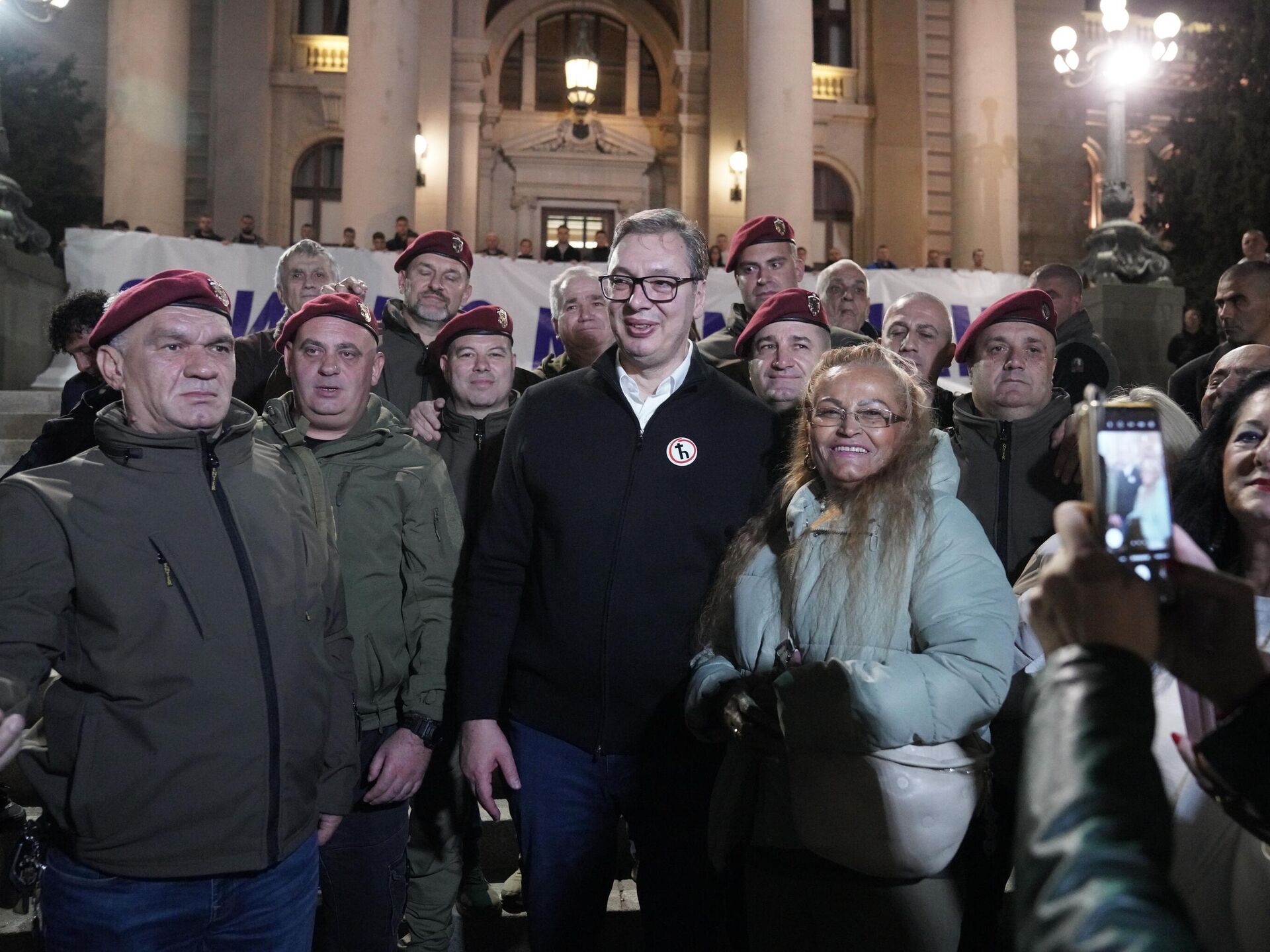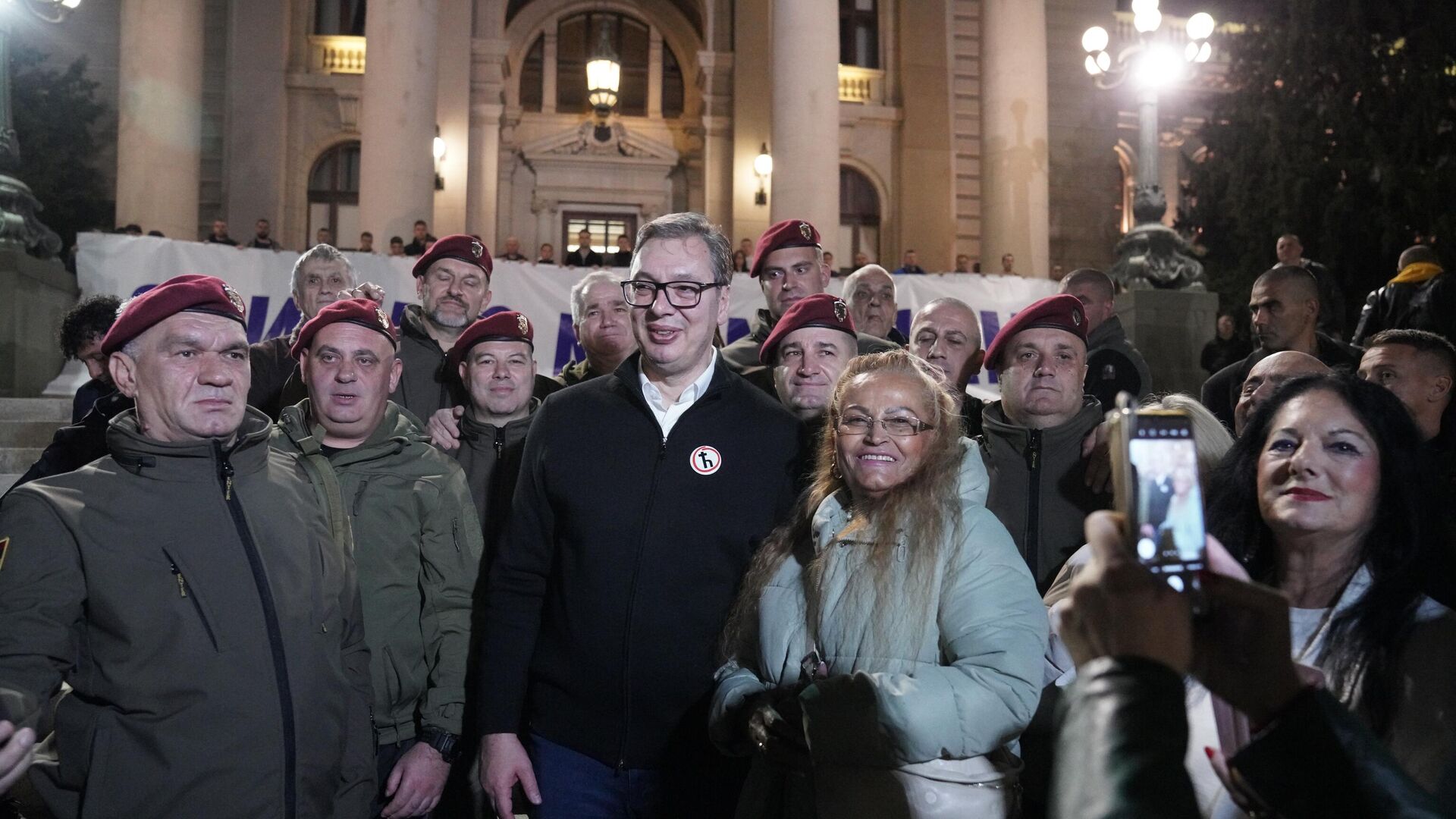"Iako ti ljudi nikoga nisu dirali, prstom nisu pipnuli i nikoga nisu ugrozili. Imate svi pozdrave od Milana i hvala vam za ovaj divni transparent. Ja sam danas pogrešio, on ima ne dvoje već troje dece i to je jedina stvar zbog koje je bio zabrinut", rekao je Vučić okupljenim građanima.