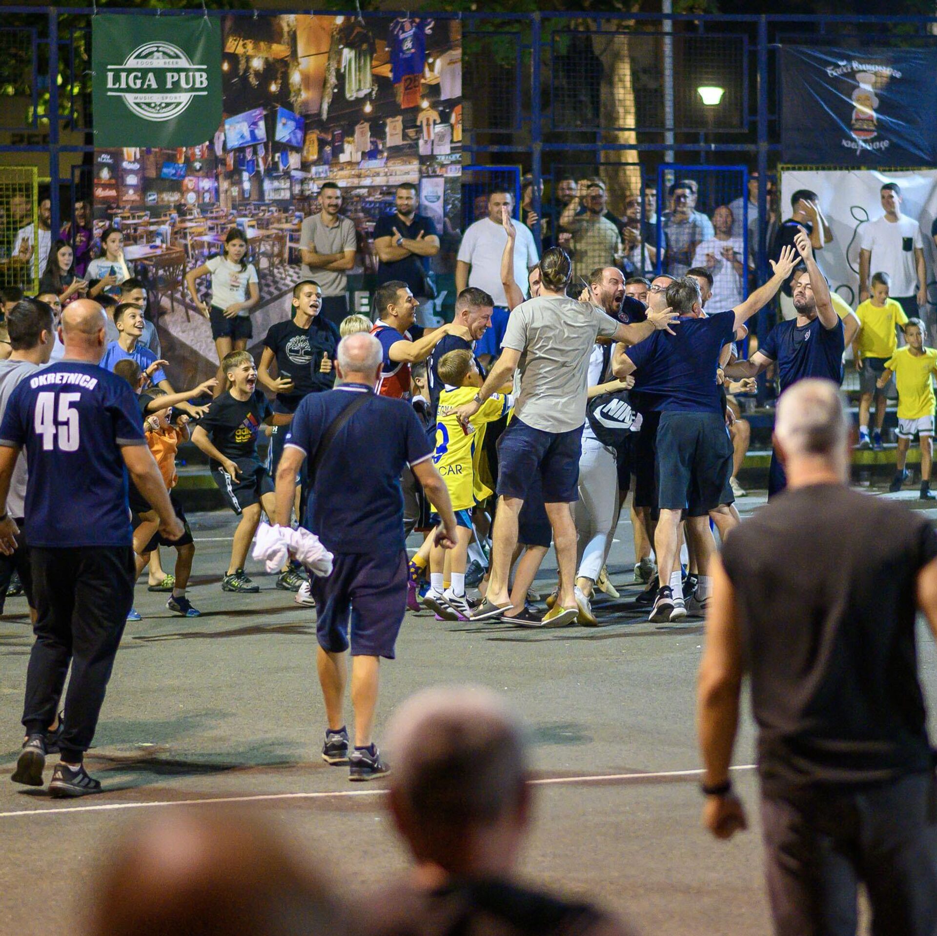 „Ovo je šut!“, konstatovao je posle šuta momka iz Starijih, u beloj majici različitoj jednako kao i svaka od njegovih saigrača, dok je tim sa Okretnice u finalu poneo „gostujuće“, teget dresove, posle belih nošenih protiv „crnih“ iz Trona u polufinalu gde su viđene i tenzije uz isključenja na po dva minuta.