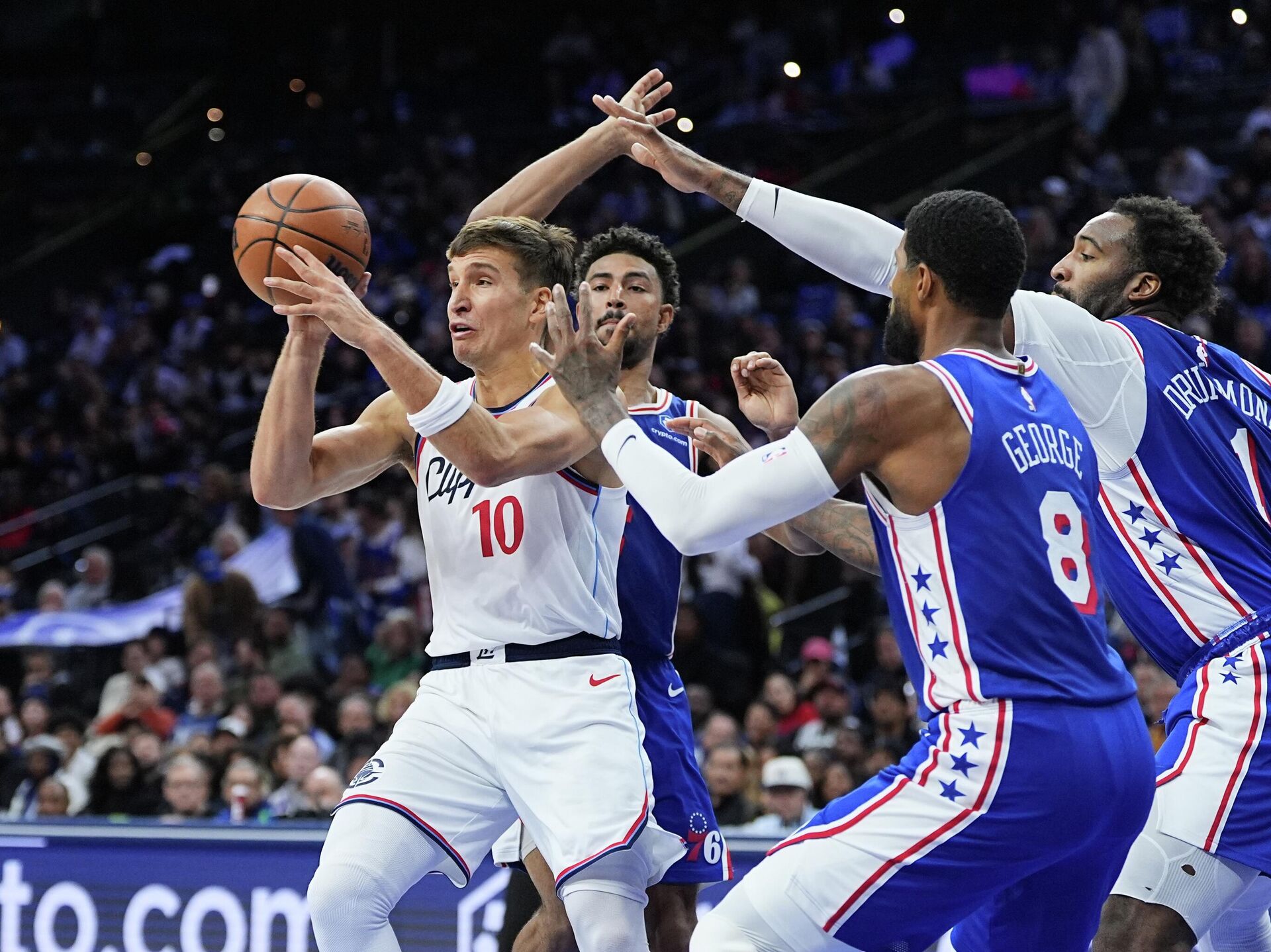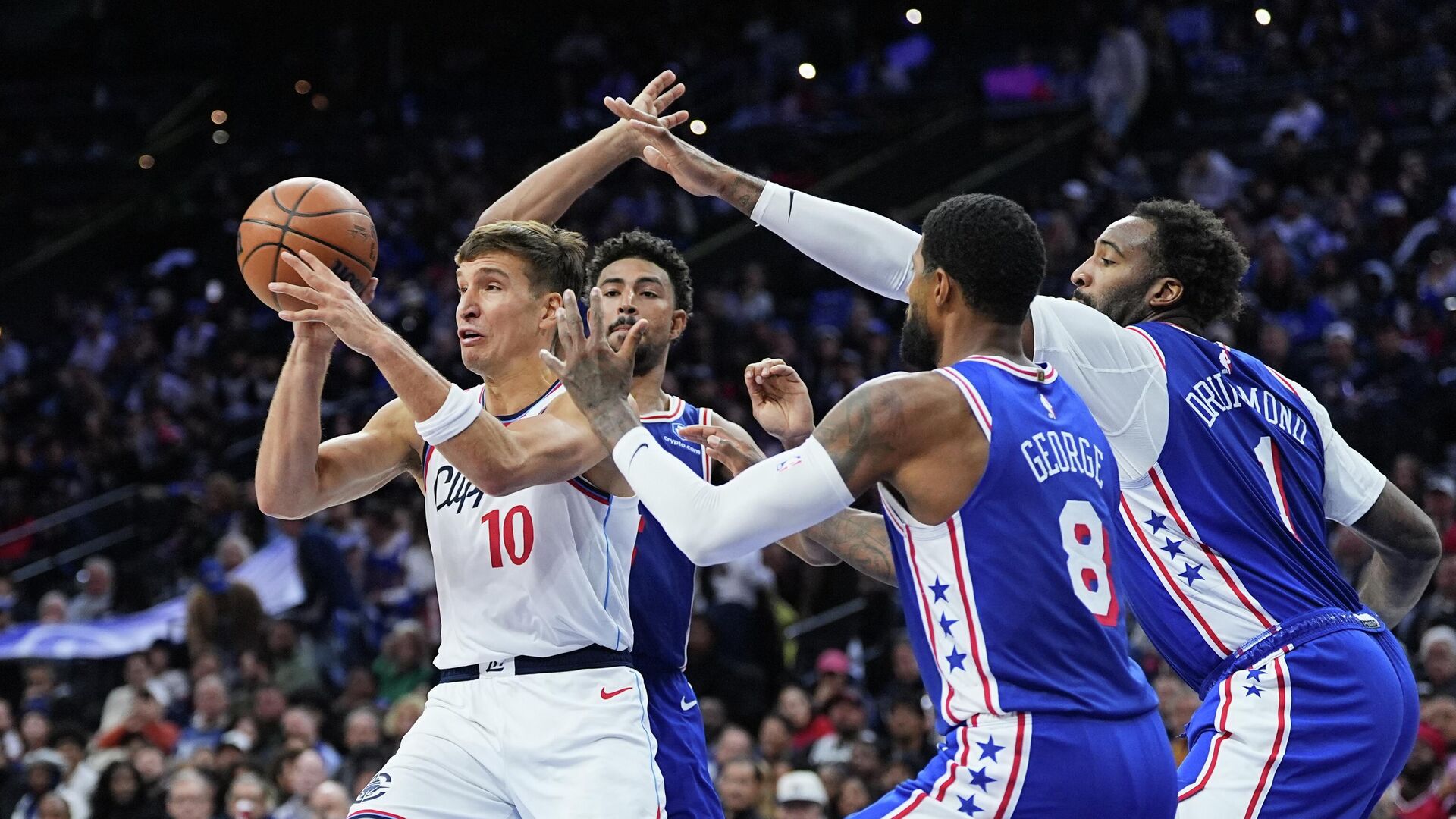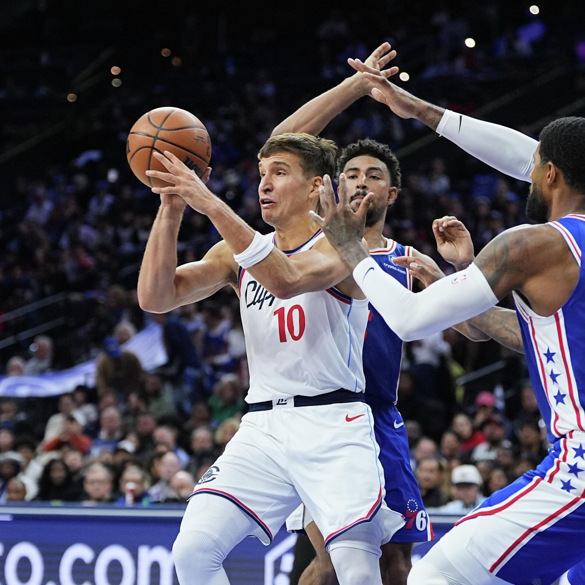 Srpski kapiten protiv Filadelfije je na terenu proveo 26 minuta, a za to vreme postigao je devet poena i tome dodao sedam skokova uz pet asistencija kao i jednu ukradenu loptu.