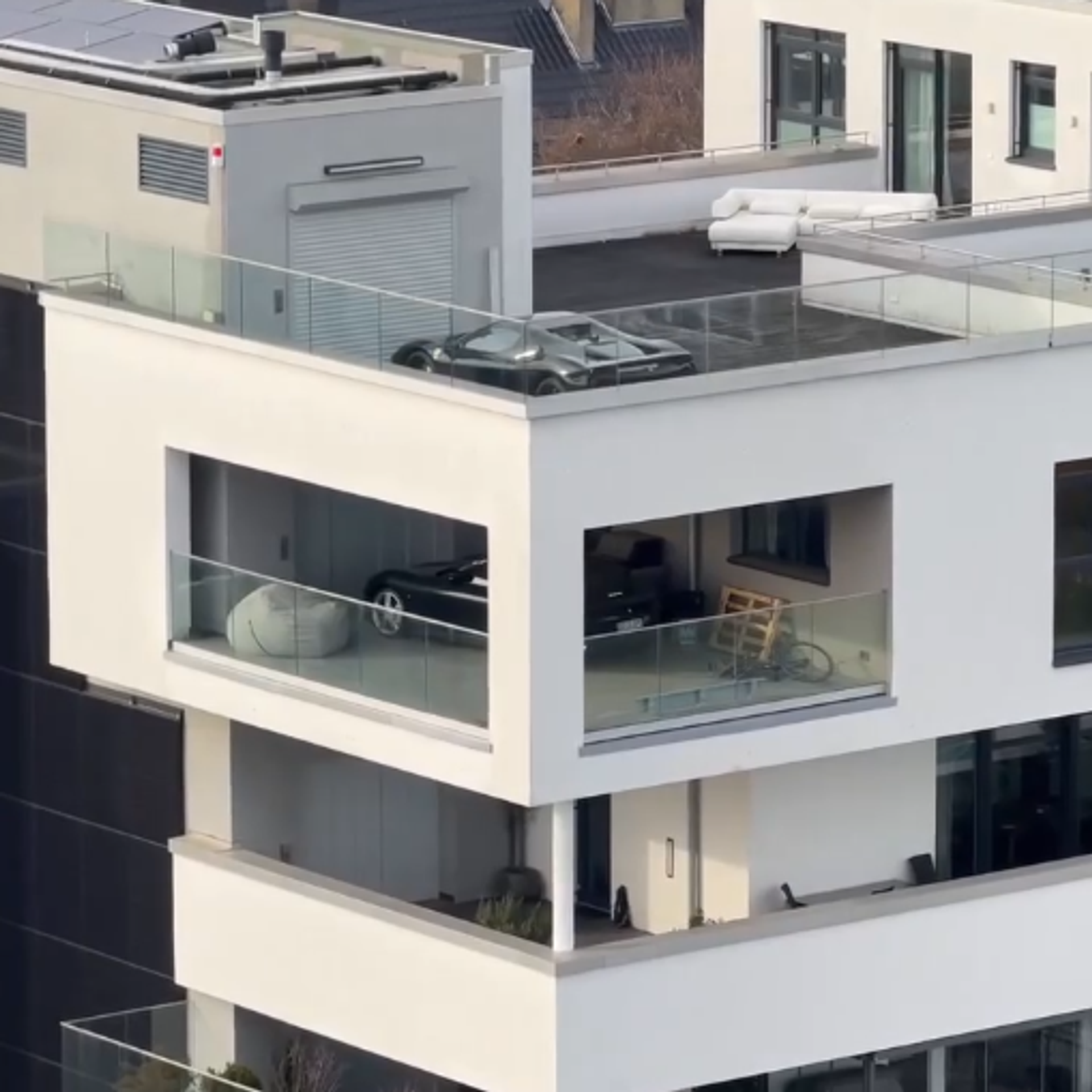 U jednom od elitnih stambenih kompleksa u Diseldorfu parkiranje automobila dostiglo je sasvim novi nivo - vlasnici podižu svoja vozila liftom direktno u stanove, ostavljajući automobile na balkonima i terasama.