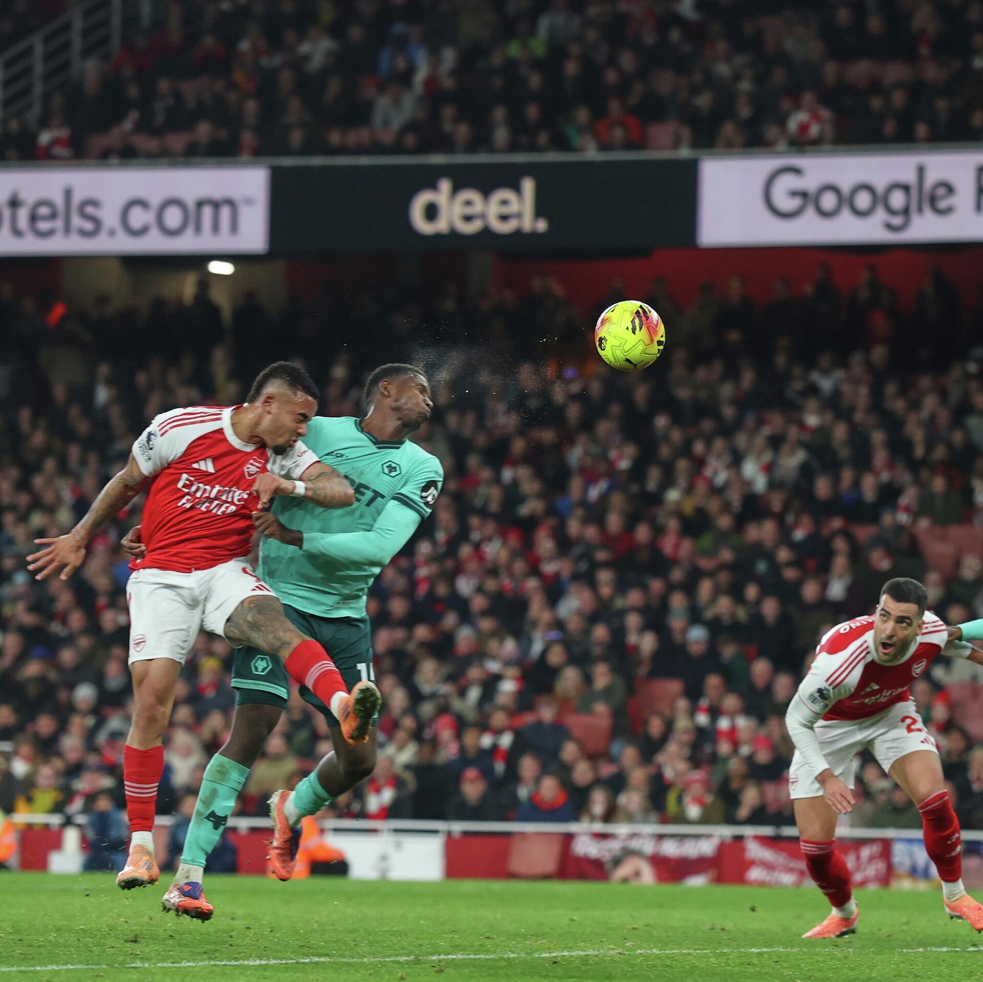 Neverovatno ali istinito. Postili su napadači Arsenala, da bi oba gola za njihov trijumf postigli gosti koji su zakucani za dno tabele.Tim Mikela Artete poveo je u 70. minutu posle kornera Bukaja Sake. Lopta je išla na drugu stativu u koju je i udarila, da bi se zatim odbila od leđa golmana Sema Džonstona i završila iza linije.Pravi šok na Emiratima usledio je u 90. minutu kada je Vulverhemton uspeo da izjednači preko Toluvalasa Emanuela Arokadarea.Snažni nigerijski napadač bolje se snažao od Inkapijea i glavom je uspeo da matira Davida Raju.Taman kada se činilo da će se prvoplasirani tim Premijer lige propisno obrukati u dvoboju sa „vukovima“ koji ubedljivo poslednji na tabeli bez pobede i samo dva osvojena boda iz čak 16 utakmica, usledio je novi autogol.Iako se prvobitno činilo da je Saka asistirao rezervisti Gabrijelu Žesusu, ubrzo je postalo jasno da je Moskera matirao sopstvenog golmana za konačnih 2:1 u 94. minutu.Na kraju, praktično dve asistencije Bukaja Sake fudbalerima Vulverhemptona.Arsenal je tako sačuvao tron, štaviše pobedao je Mančester sitiju na pet bodova uz meč više.„Građani“ Pepa Gvardiole u nedelju od 15 sati gostuju Kristal Palasu.Aston Vila je treća uz, takođe, meč manje, dok je Čelsi četvrti i ima „minus osam“ u odnosu na lidera i gradskog rivala.