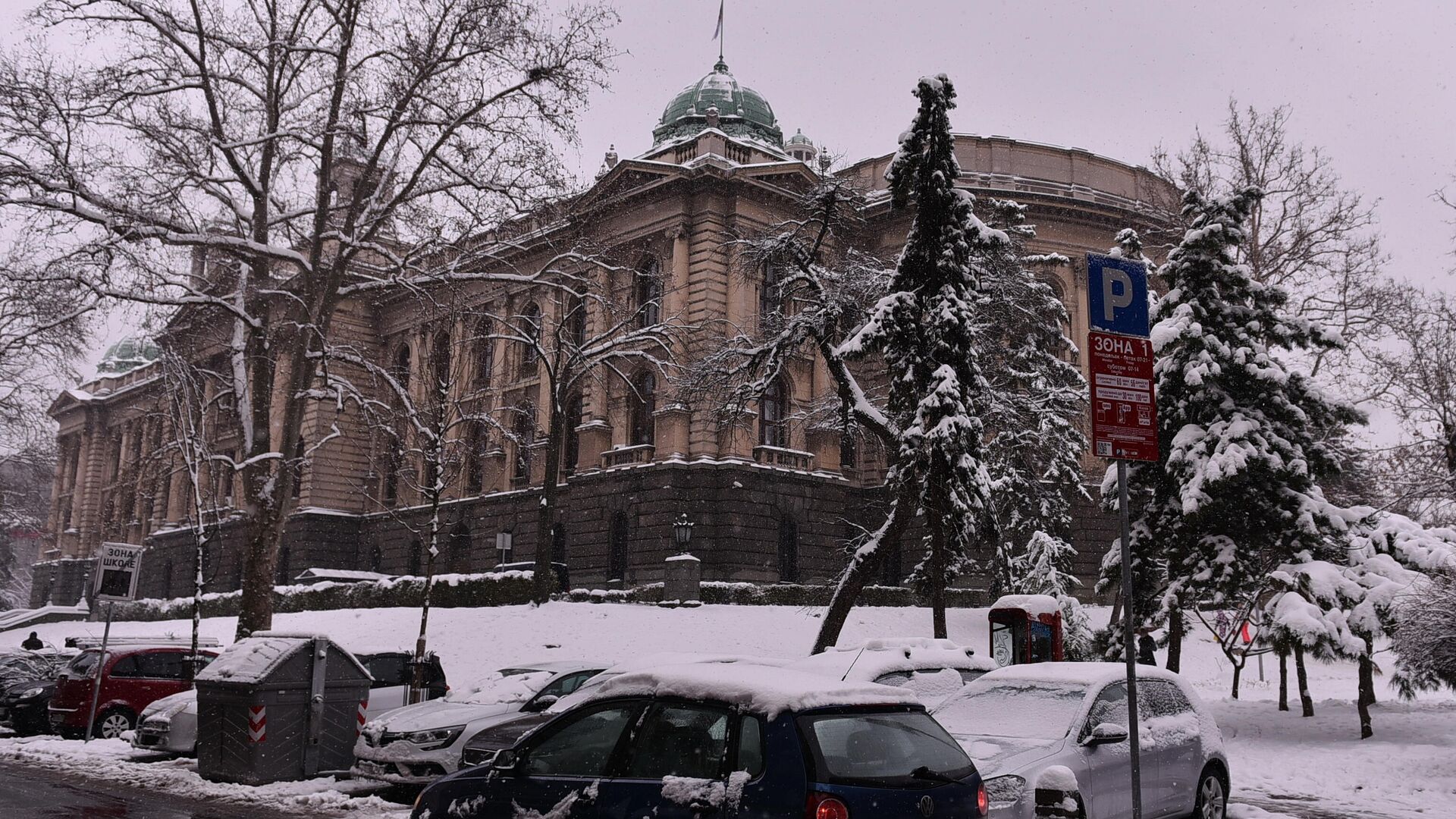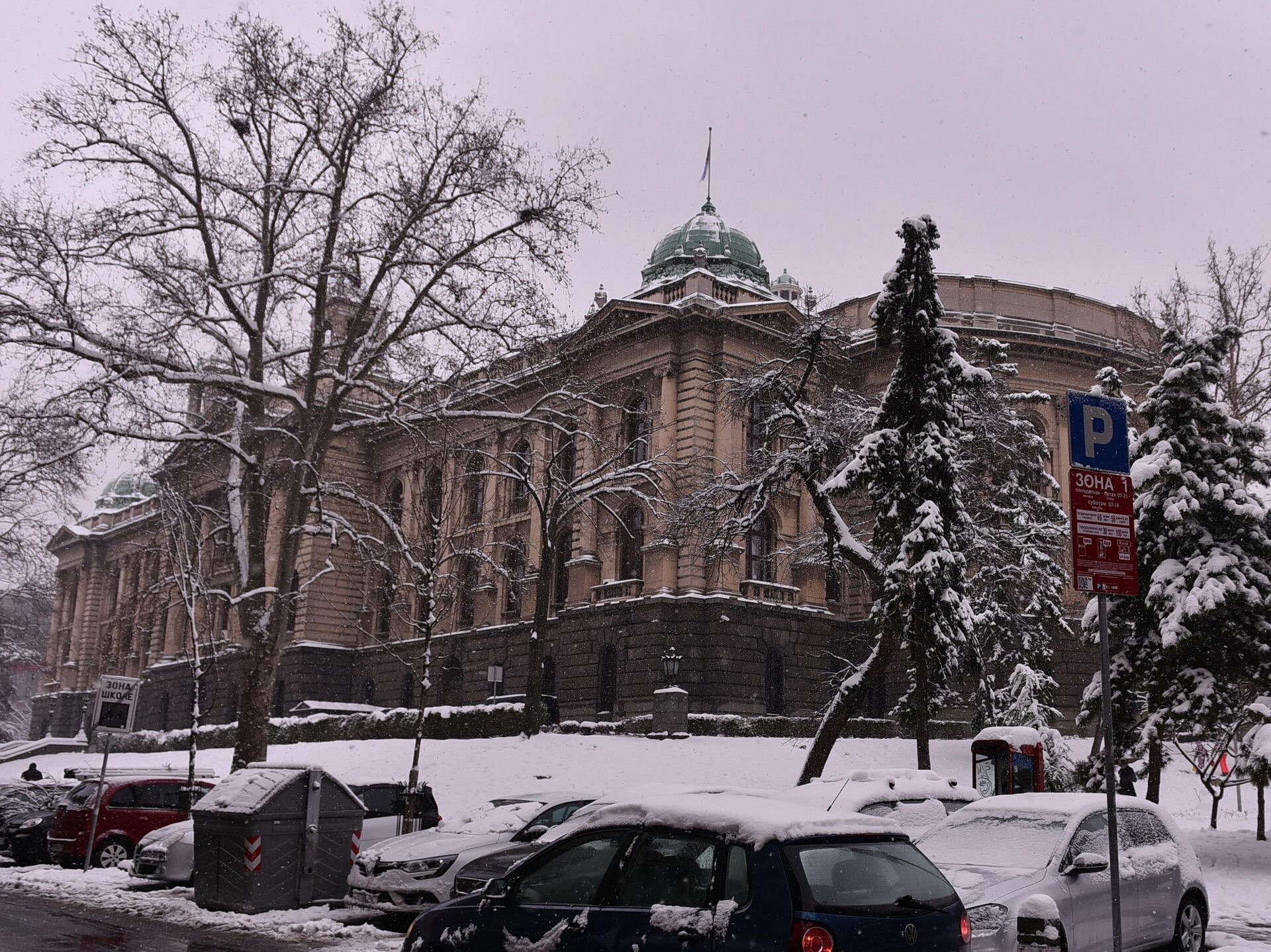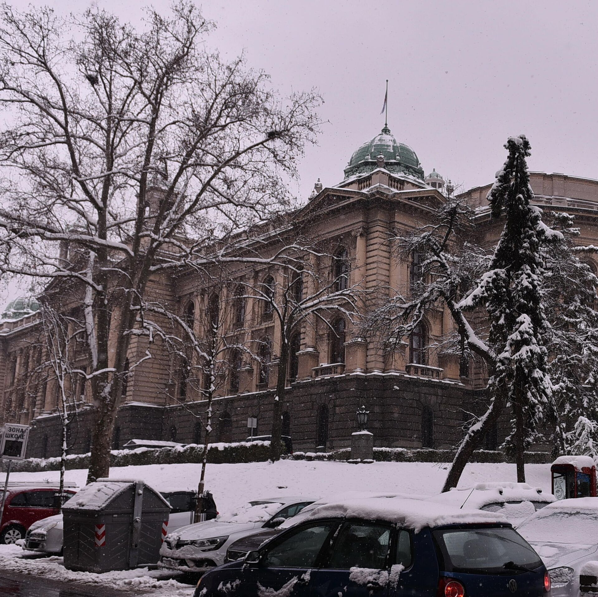 Ispred zgrade parlamenta na Trgu Nikole Pašića, od jutros nema novogodišnjih kućica koje su tamo postavljene uoči praznika umesto šatora koji su tamo bili... 04.01.2026, Sputnik Srbija