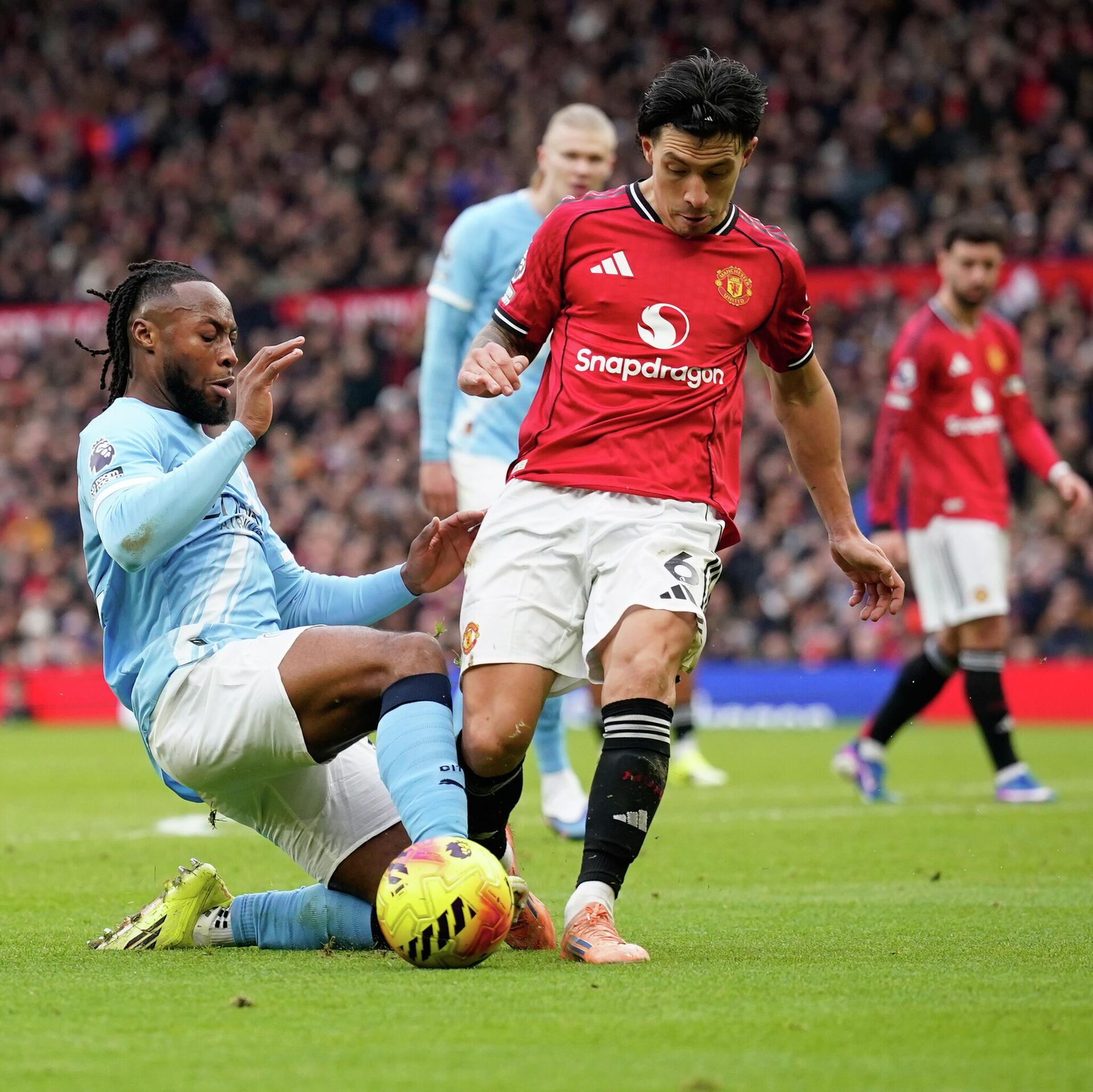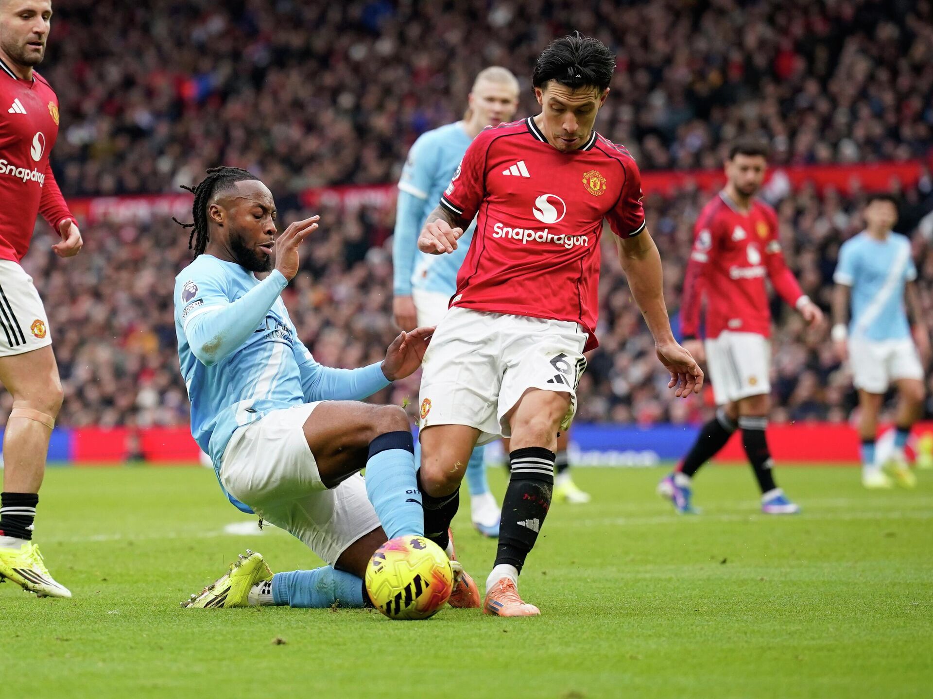 Domaćin je prvu veliku šansu imao već u trećem minutu, kada je posle kornera kapitena Bruna Fernandeša Hari Megvajer udarcem glavom sa manje od dva metra pogodio prečku. U 59. minutu domaćin je imao novu stoodstotnu šansu, ali je golman gostiju Đanluiđi Donaruma odbranio zicer Kazemiru.