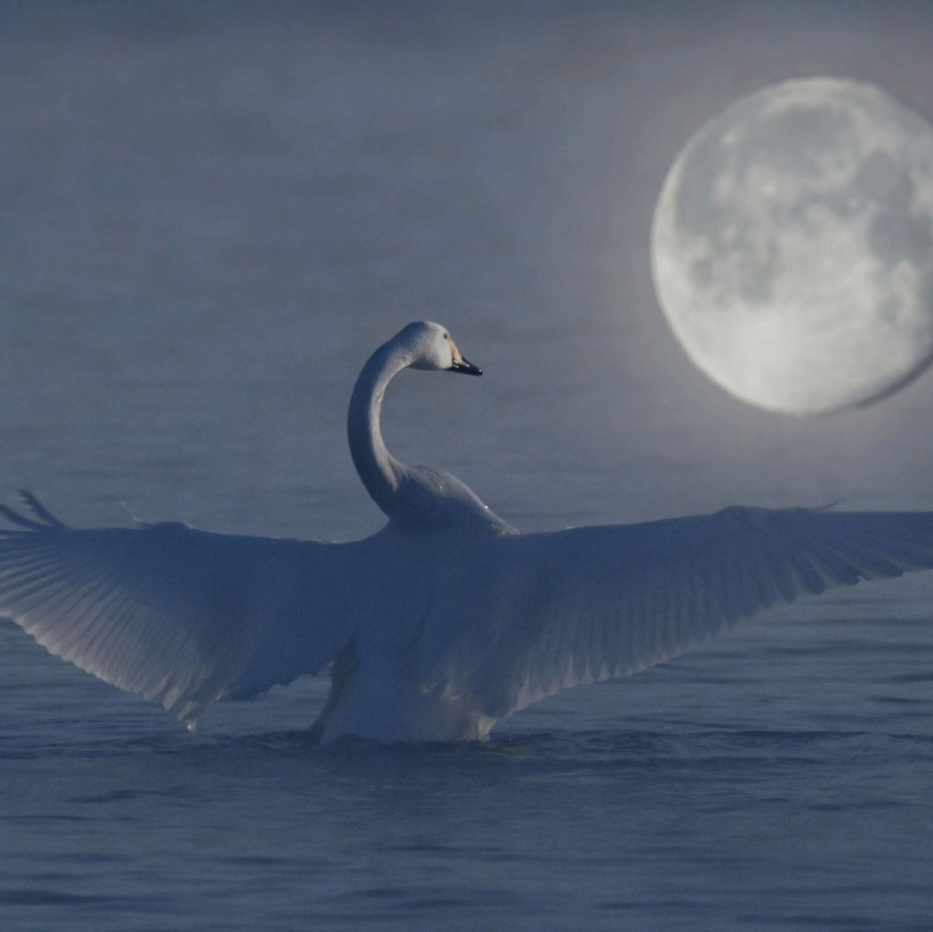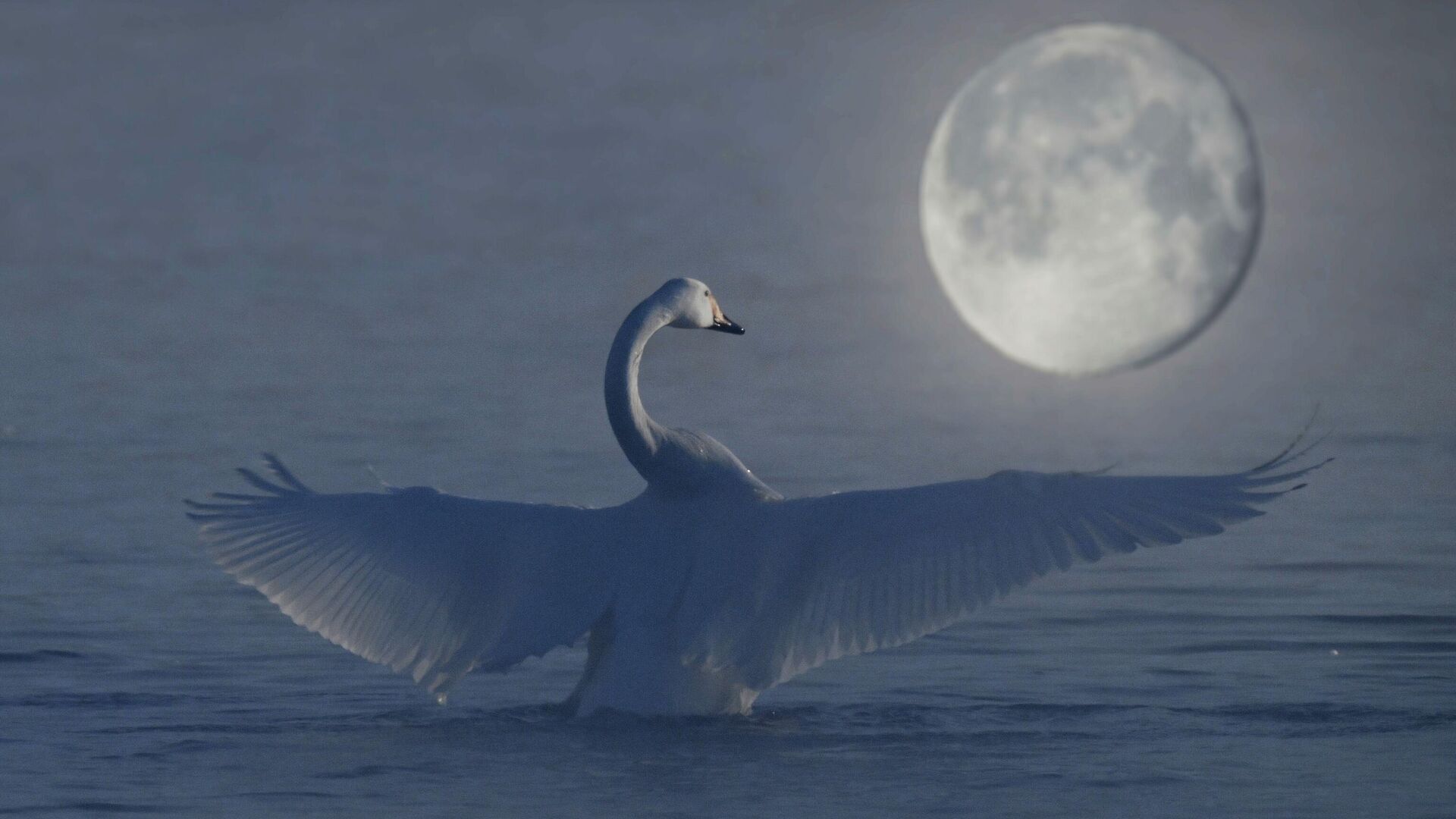 © Sputnik / Vladimir Vyatkin / Uđi u bazu fotografija Na Svetlom jezeru zimuju uglavnom: pevac labud(najbrojniji i glavni zimski stanovnik) i ređe mali labud.