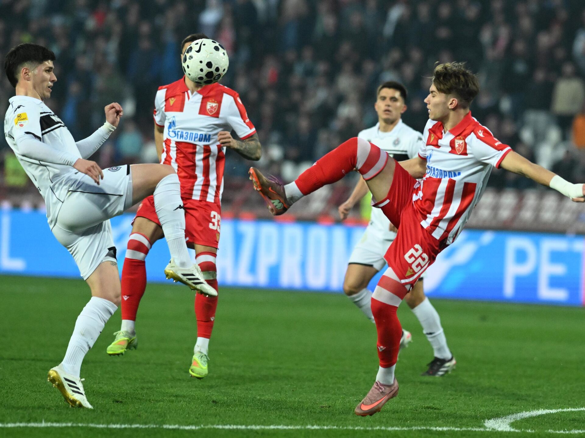 Fudbaleri Crvene zvezde savladali su Partizan sa 3:0 na svom terenu u okviru 24. kola Superlige Srbije. Utakmicu ste mogli da pratite uz Sputnjik. 22.02.2026, Sputnik Srbija