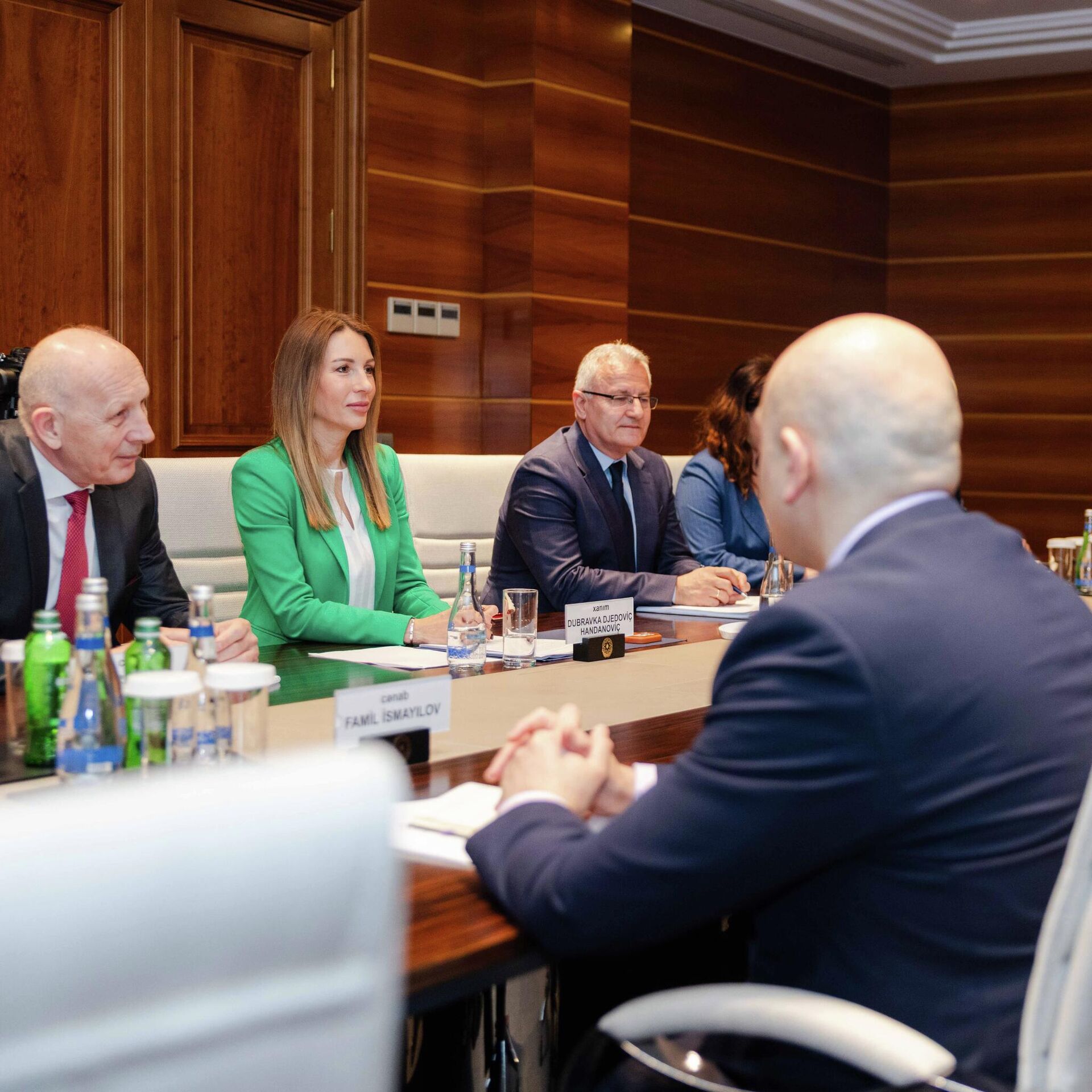 Ona se sastala sa ministrom finansija Azerbejdžana Sahilom Babajevim, ekonomije Mikailom Džabarovim i predsednikom kompanije SOCAR Rovšanom Nadžafom kao i ministrom energetike Parvizom Šahbazovim.